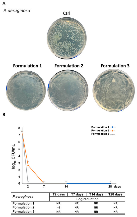 Formulations were divided into 10 mg aliquots and inoculated with bacterial suspensions at 106/mL or fungal suspensions at 105/mL. Samples were incubated at 20–25 °C. At different time points, 2, 7, 14, and 28 days, one mg aliquots were serially diluted in Muller-Hinton broth or in Yeast nitrogen base broth (YNB, Thermo Fisher Scientific, Milan, Italy) and plated in duplicate on Muller-Hinton Agar (for bacteria) or Sabouraud dextrose agar (SDA, Thermo Fisher Scientific, Milan, Italy) (for fungi). Plates were incubated at 30–35 °C for up to 3 days for bacteria and 20–25 °C for up to 5 days for fungi. Raw microbial counts were converted to log10 values for analysis.