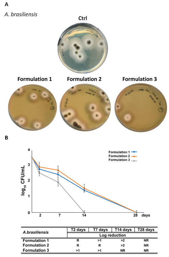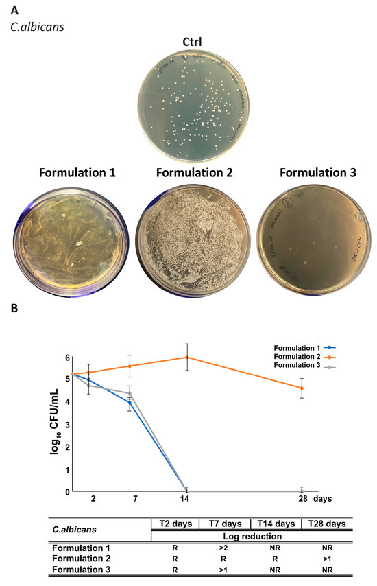 An in vitro challenge test, carried out in accordance with UNI EN ISO 11930:2022 [29], was used to evaluate the preservative efficacy of the formulations.