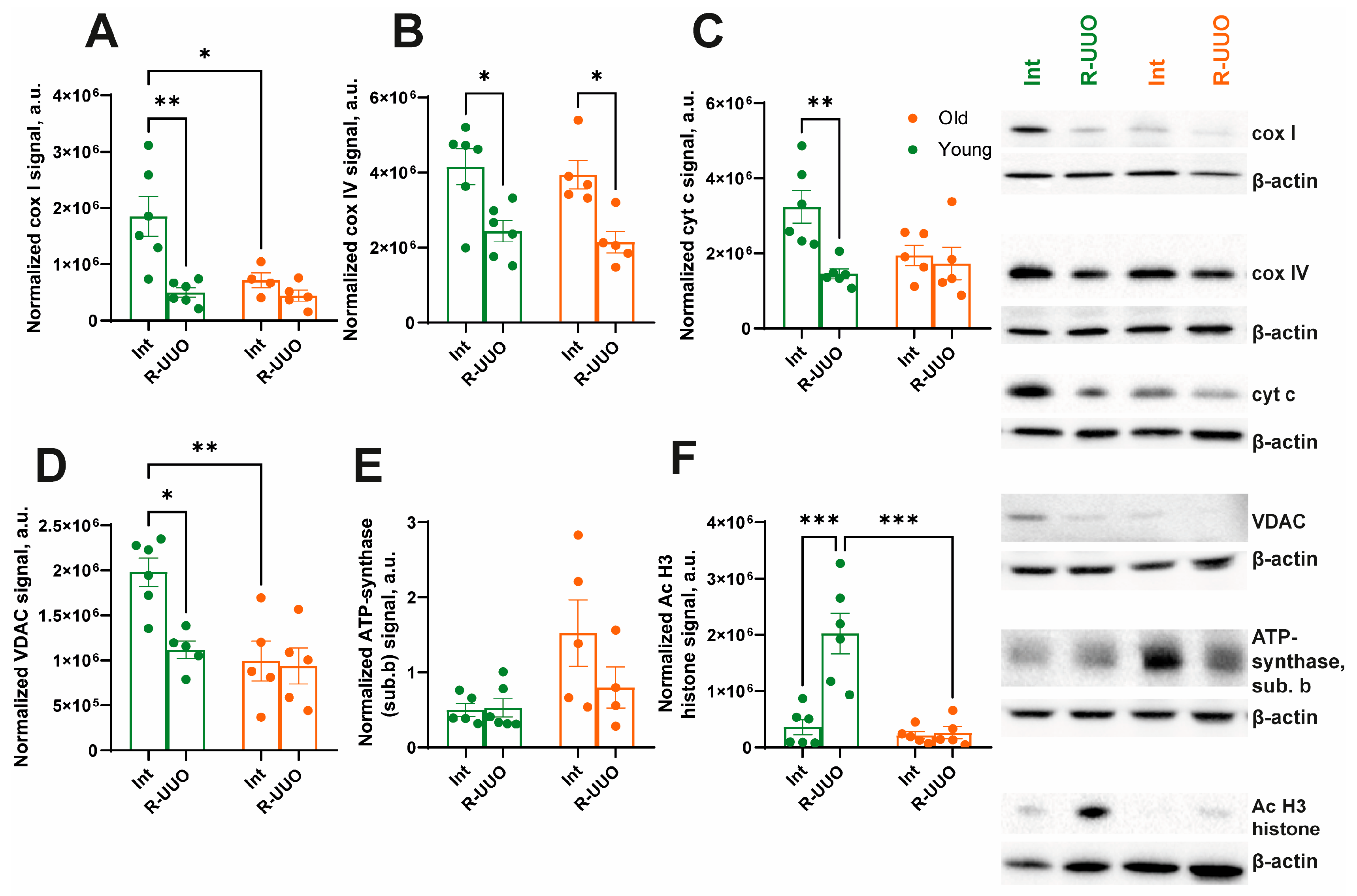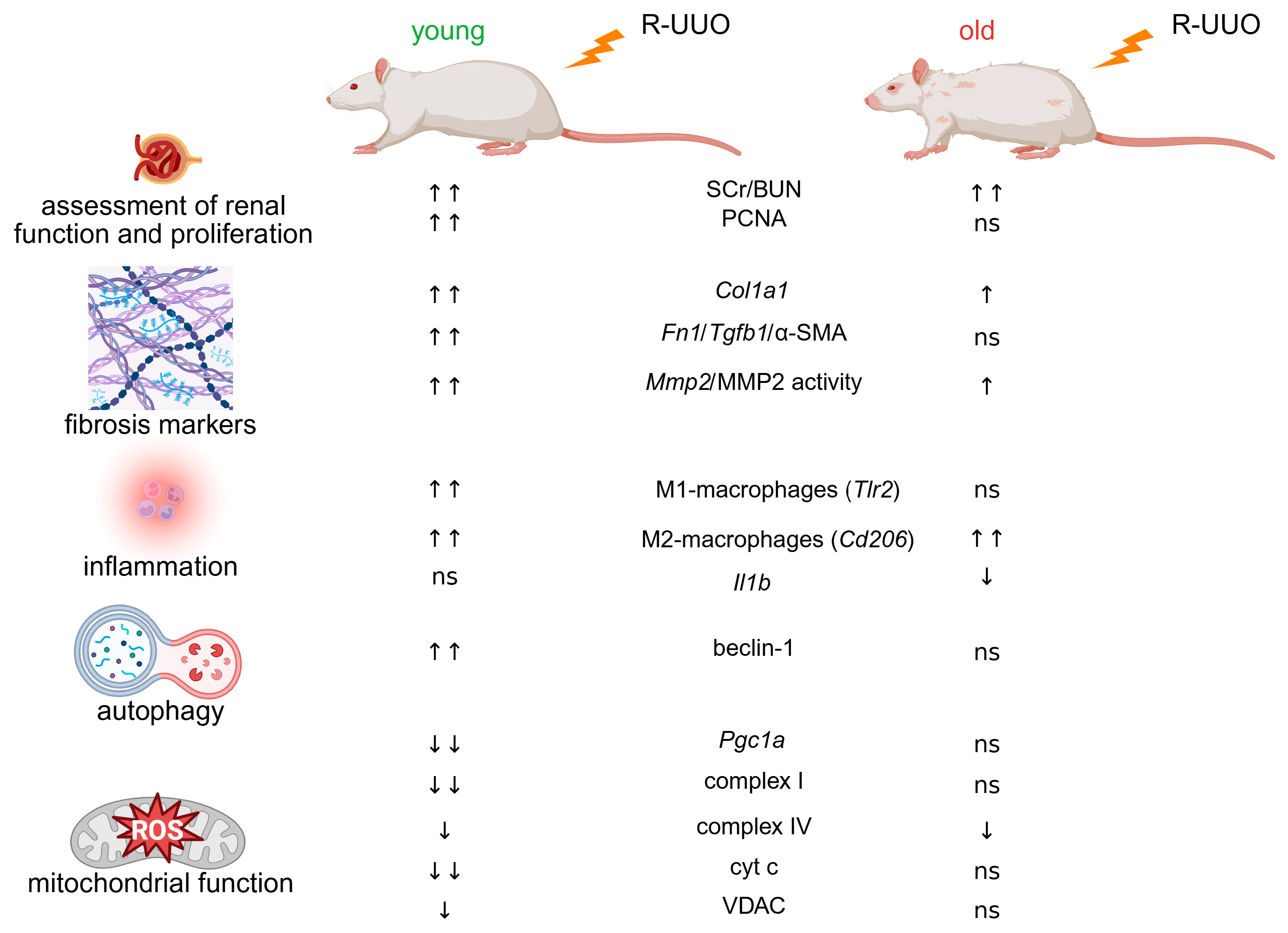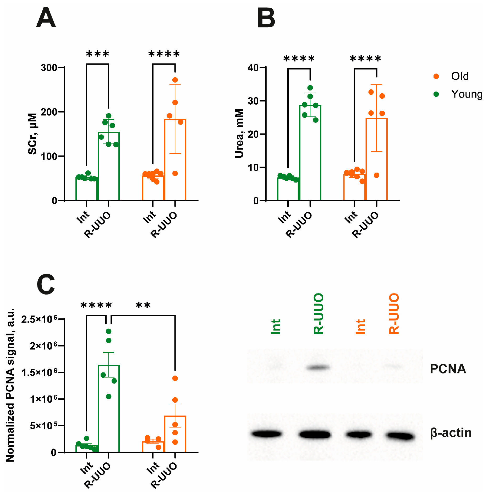 3.6. Age-Dependent Mitochondrial Dysfunction Following R-UUO