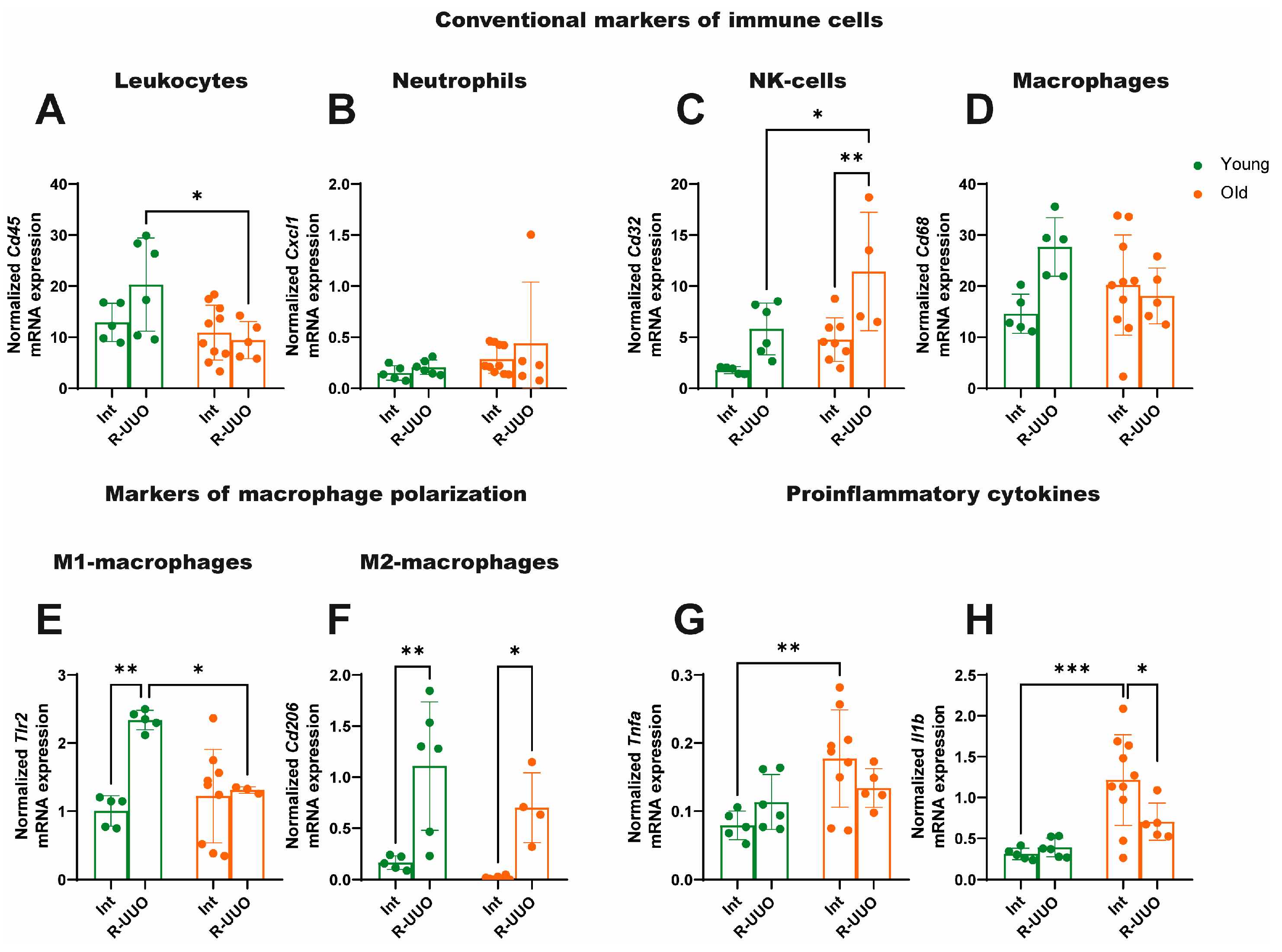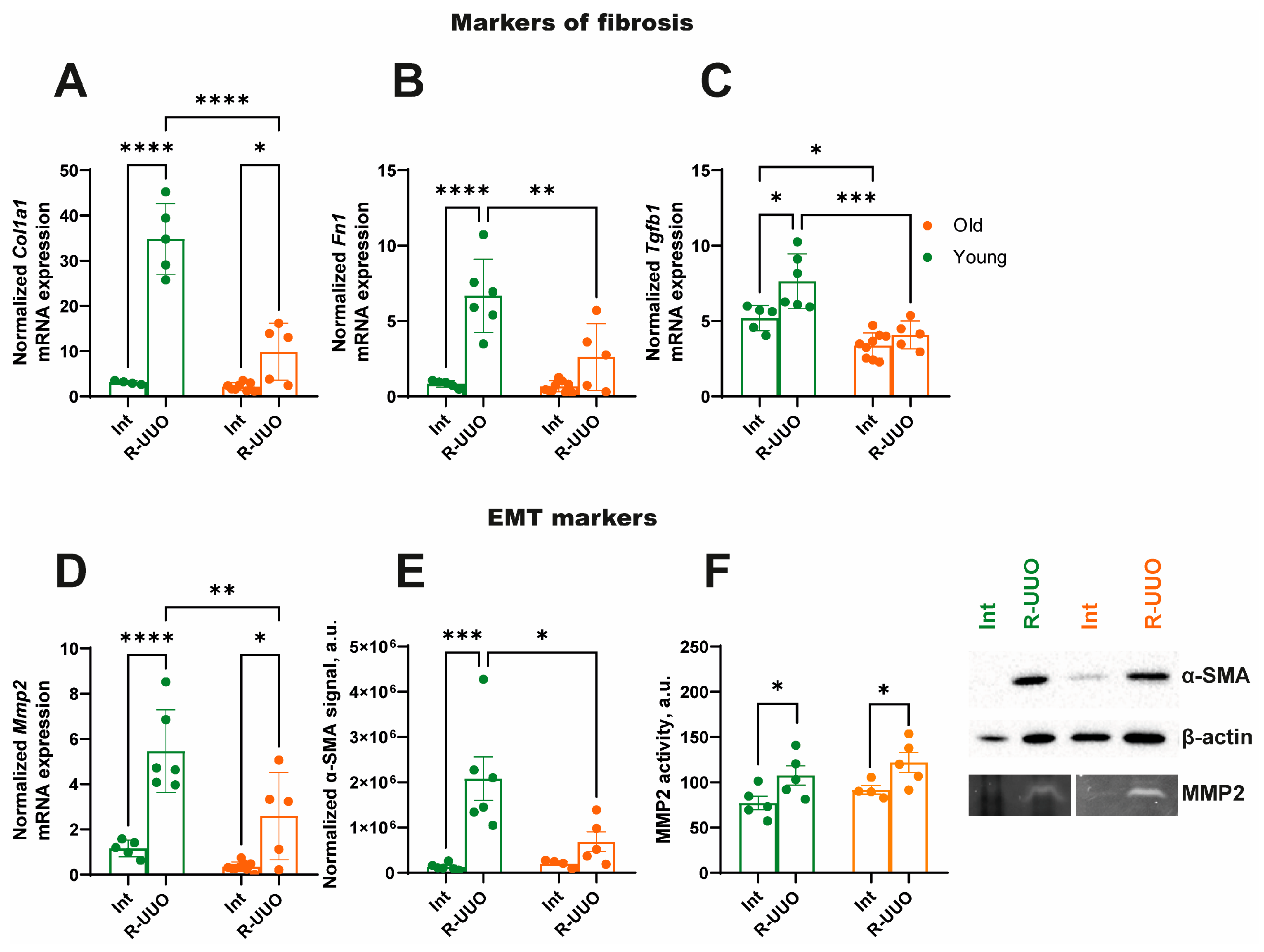 3.2. R-UUO Induces More Pronounced Fibrosis Marker Expression in Young Rats Compared to Old