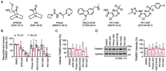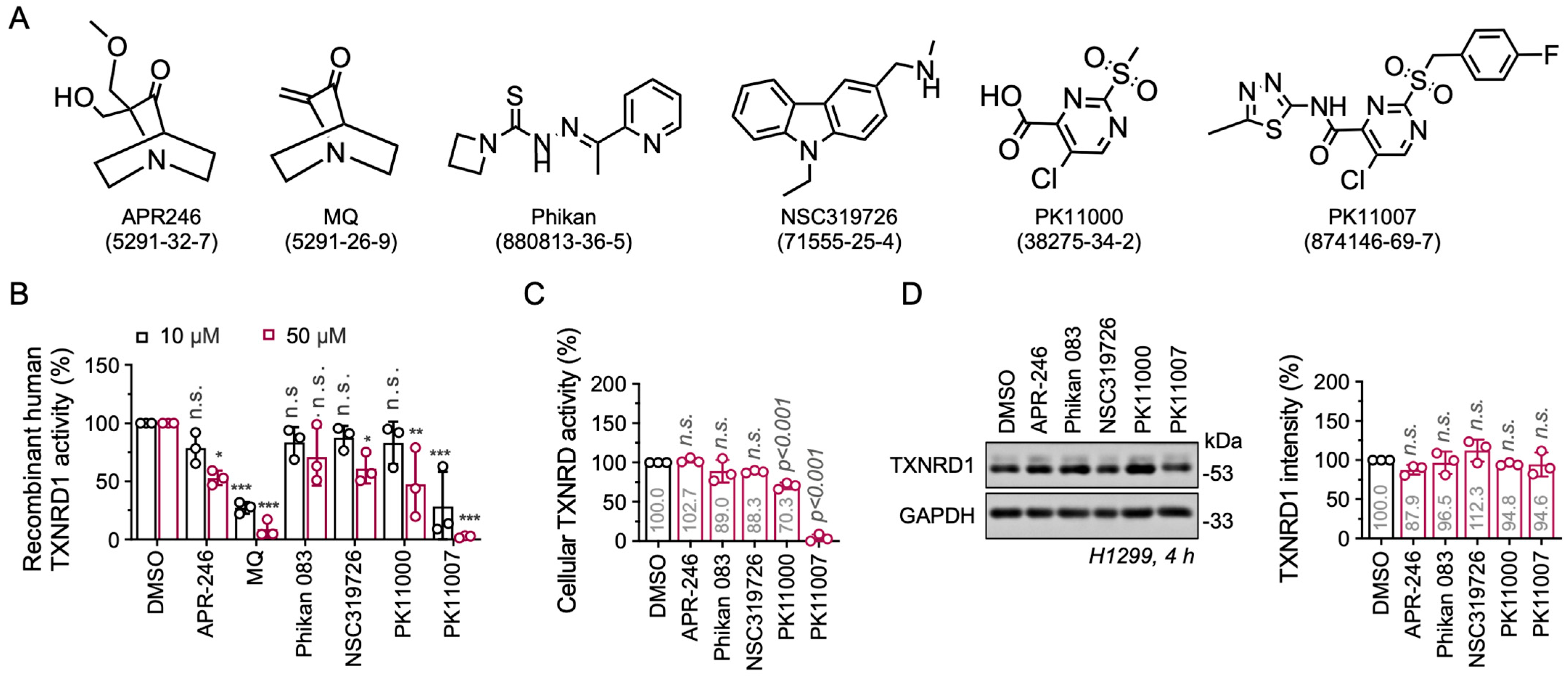 3.1. Electrophilic p53 Re-Activators MQ and PK11007 Inhibit Selenoprotein TXNRD1