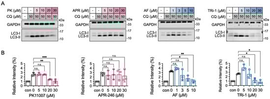 3.7. TXNRD1 Inhibition Reduces LC3-II Accumulation Induced by Chloroquine (CQ)