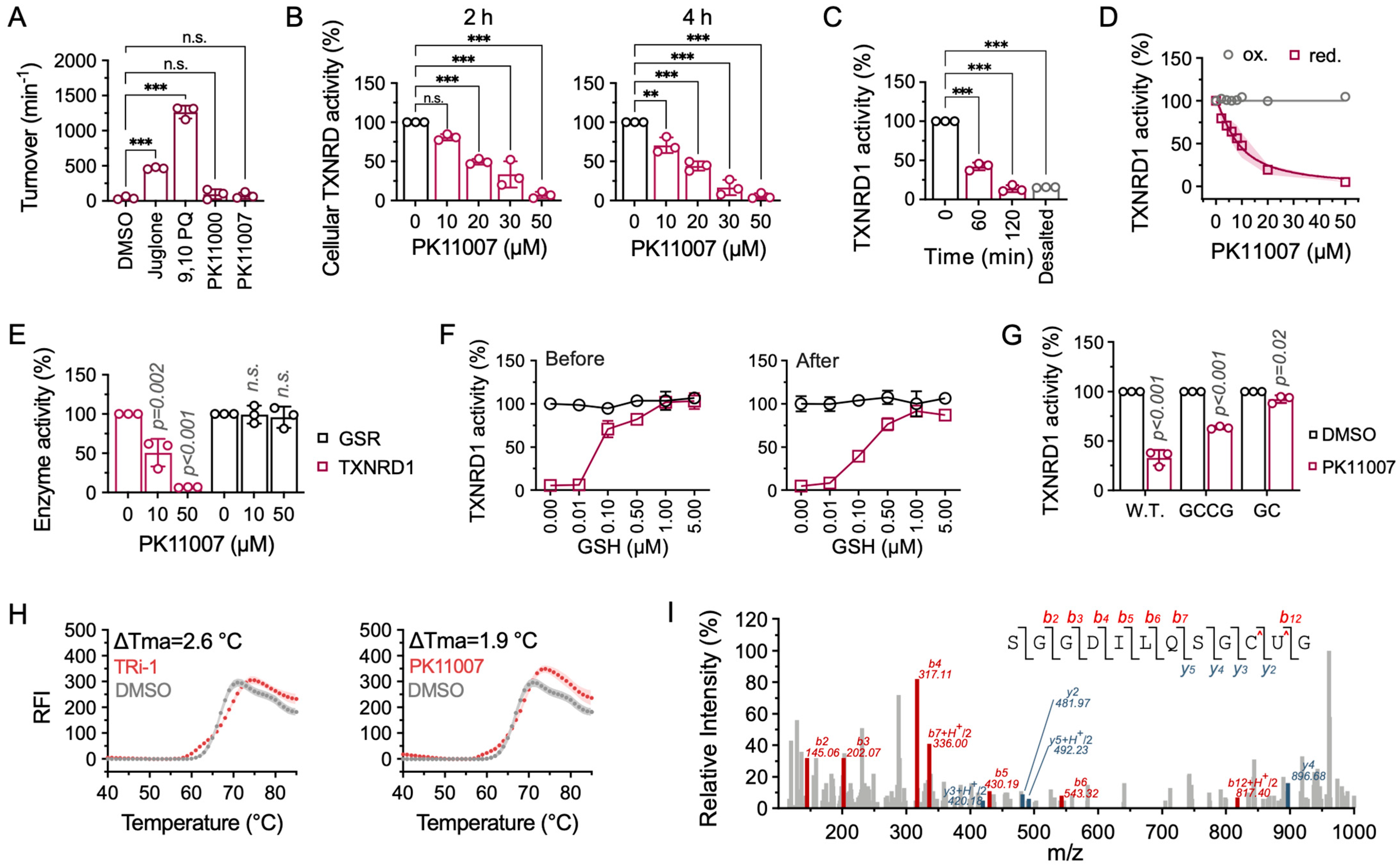 3.2. PK11007 Irreversibly Inhibits TXNRD1 Activity