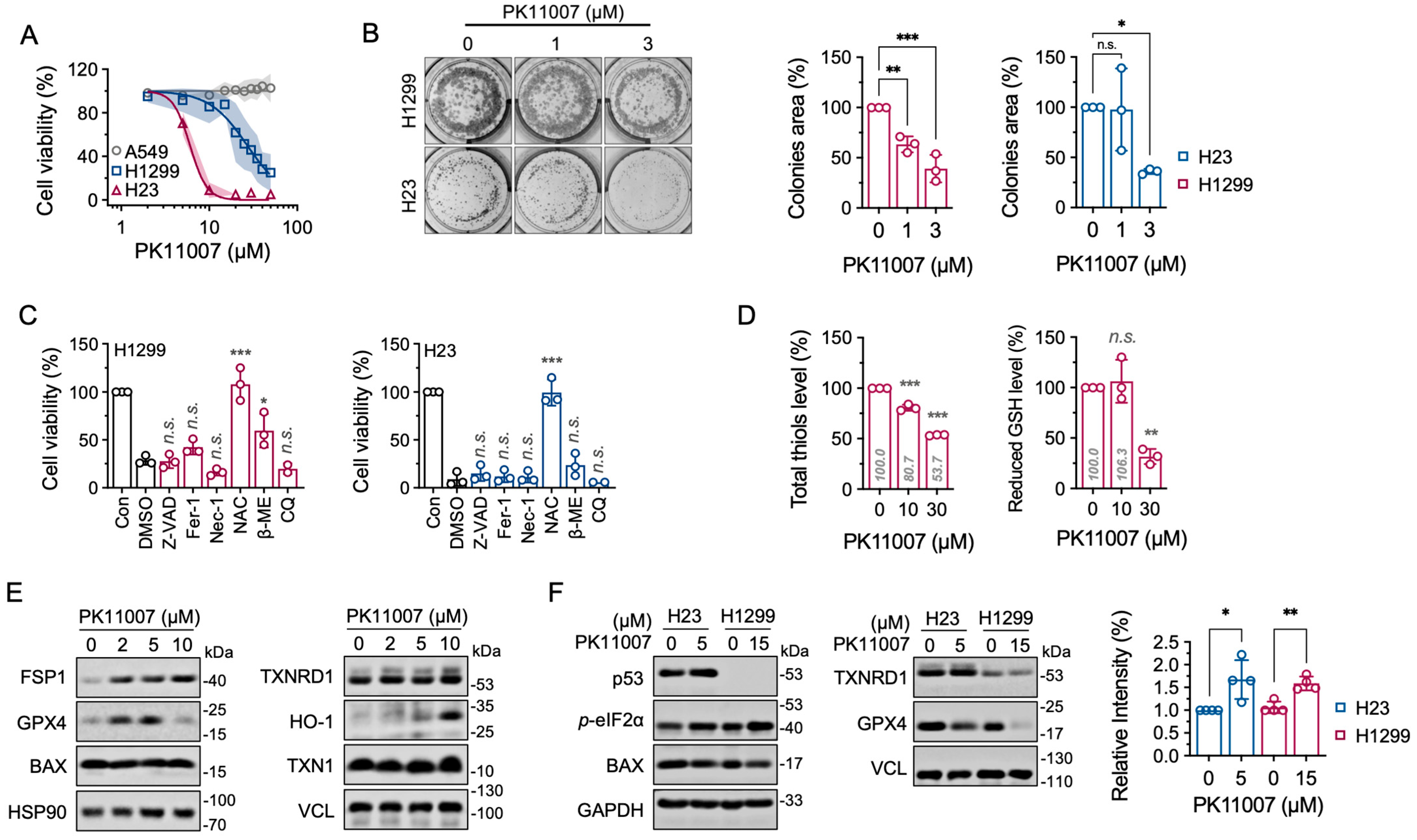 Chicago/Turabian StyleZhou, Hanziyi, Shibo Sun, Haowen Liu, Tong Li, Yiran Xu, Rui Yang, Haiyan Liu, Leiyu He, Weiping Xu, Shui Guan, and et al. 2025. "PK11007 Covalently Inhibits Thioredoxin Reductase 1 to Induce Oxidative Stress and Autophagy Impairment in NSCLC Cells" Antioxidants 14, no. 10: 1222. https://doi.org/10.3390/antiox14101222