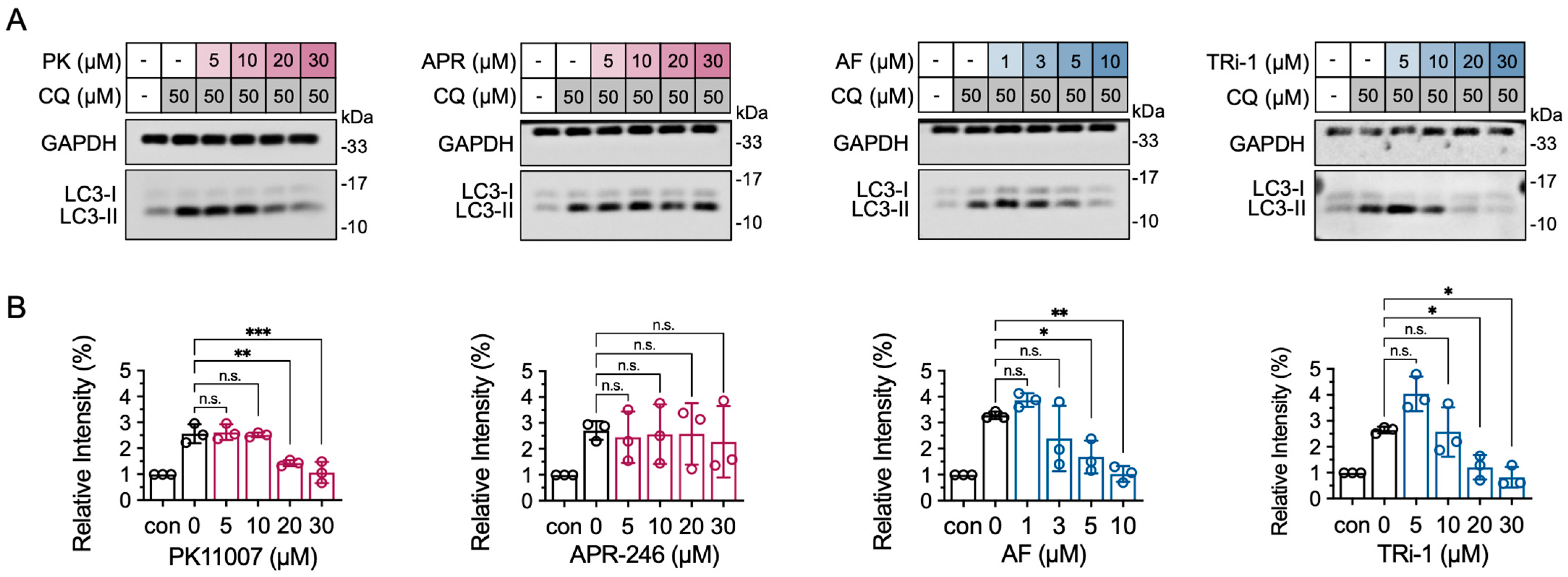 3.6. Inhibition of TXNRD1 by PK11007 Inhibits Autophagic Flux