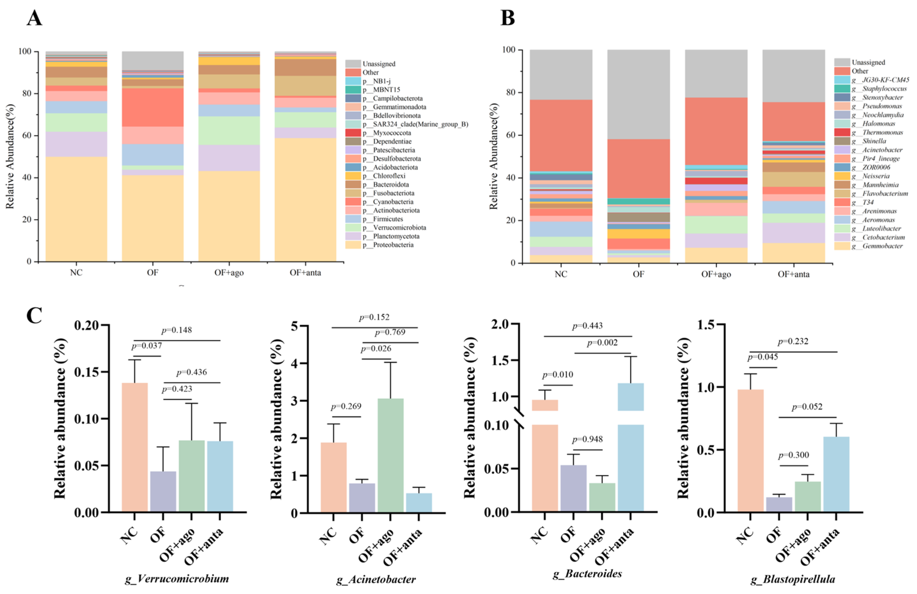 3.7. Intestinal Microbiota Composition and Differences Analysis