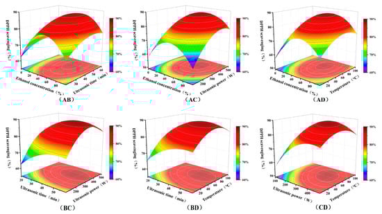 The interaction between ethanol concentration (A), ultrasonication time (B), ultrasonic power (C), and temperature (D).