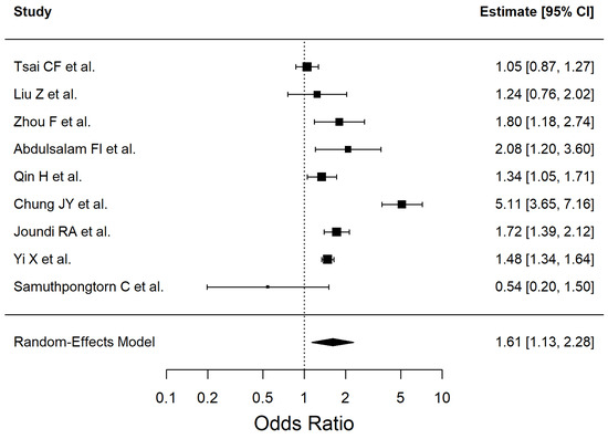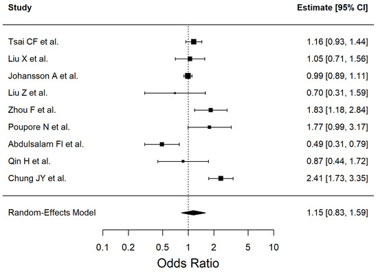 | Chronic alcohol consumption | 1.15 | 0.83–1.59 | 0.3922 | 88.13 |