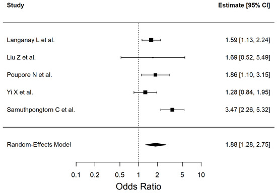 | Atrial Fibrillation | 1.87 (1.28–2.75) | 5 | 9473 | Low | Inconsistency (I2 = 66.75%), Study design (observational evidence) |
