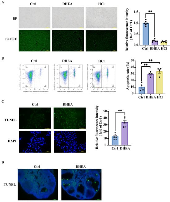 3.2. Intracellular Acidification Promotes Granulosa Cell Apoptosis and Contributes to Ovarian Impairment in PCOS