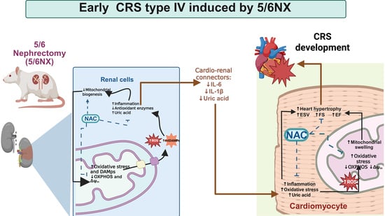 Peralta-Buendía, K.; Cuevas-López, B.; García-Arroyo, F.E.; Díaz-Rojas, M.; León-Contreras, J.C.; Silva-Palacios, A.; Gonzaga, G.; Tapia, E.; Saavedra, E.; Hernández-Pando, R.; et al. Early Administration of N-Acetylcysteine Provides Renal and Cardiac Mitochondrial and Redox Protection, Preventing the Development of Cardio-Renal Syndrome Type IV Induced by 5/6NX. Antioxidants 2025, 14, 1241. https://doi.org/10.3390/antiox14101241