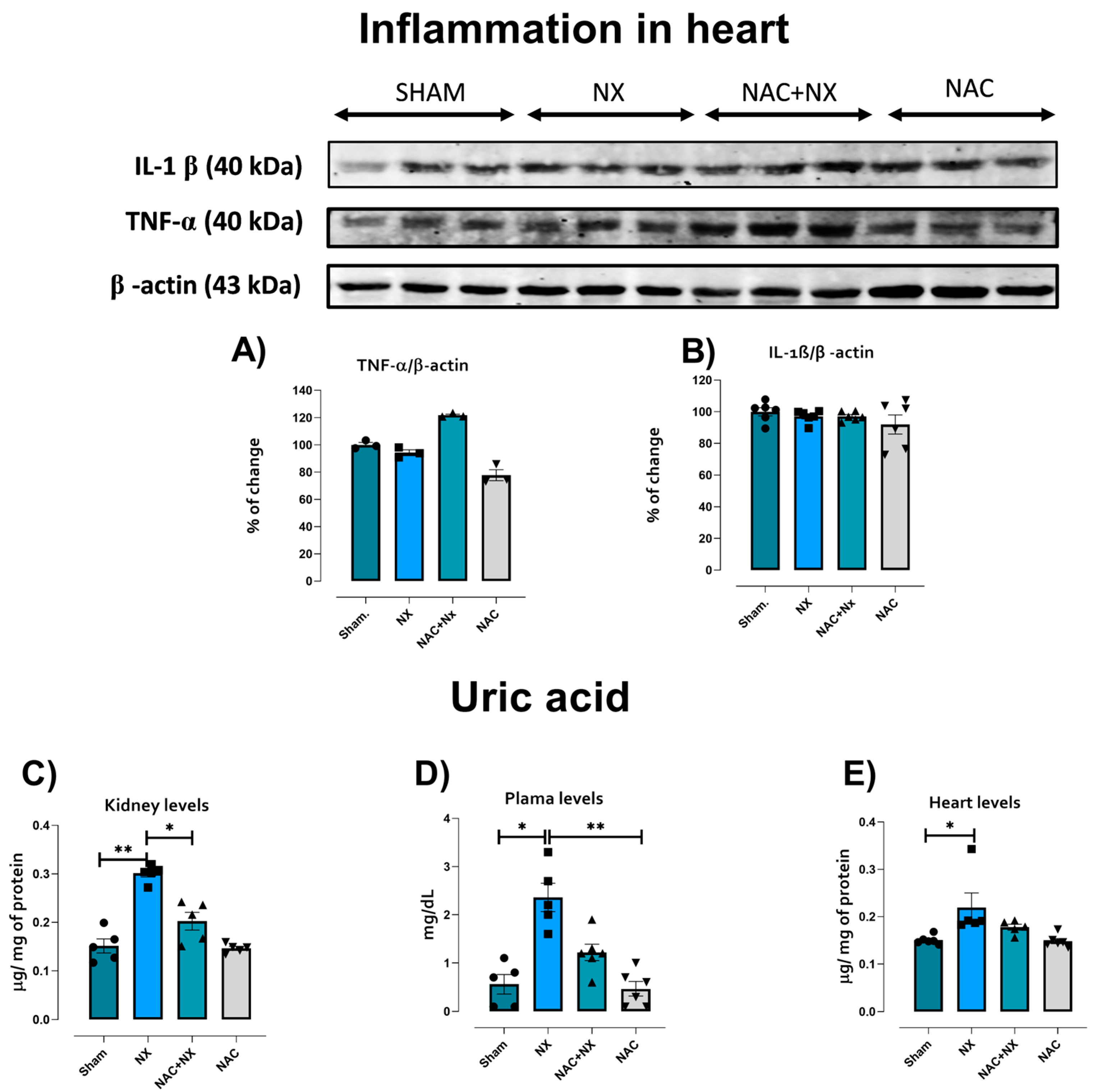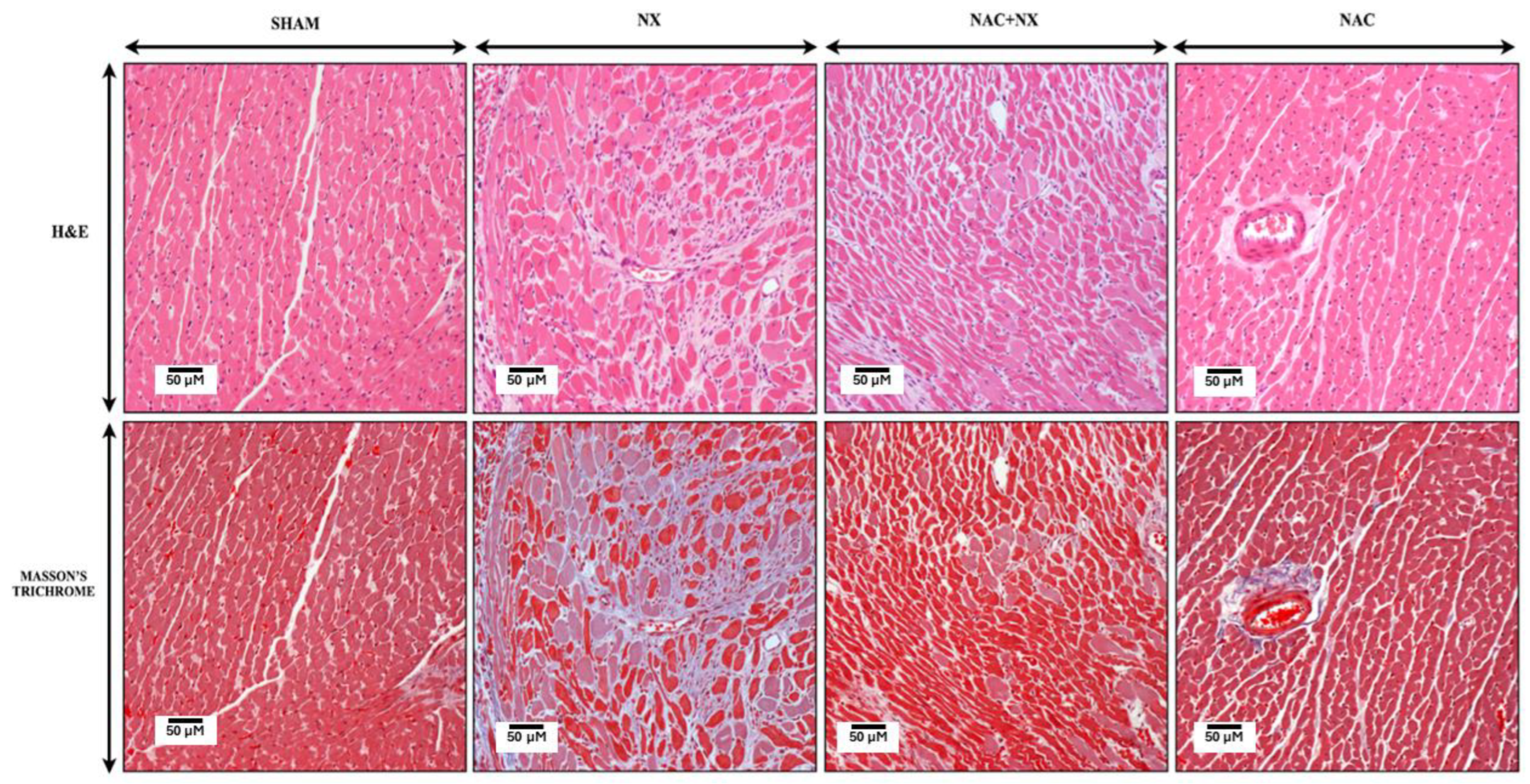 3.3. NAC Prevented Redox Imbalance in Renal and Heart