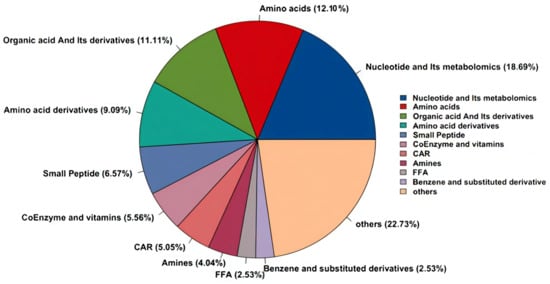 The pie chart of Pa JY062 postbiotic components classification and the percentage of each substance.