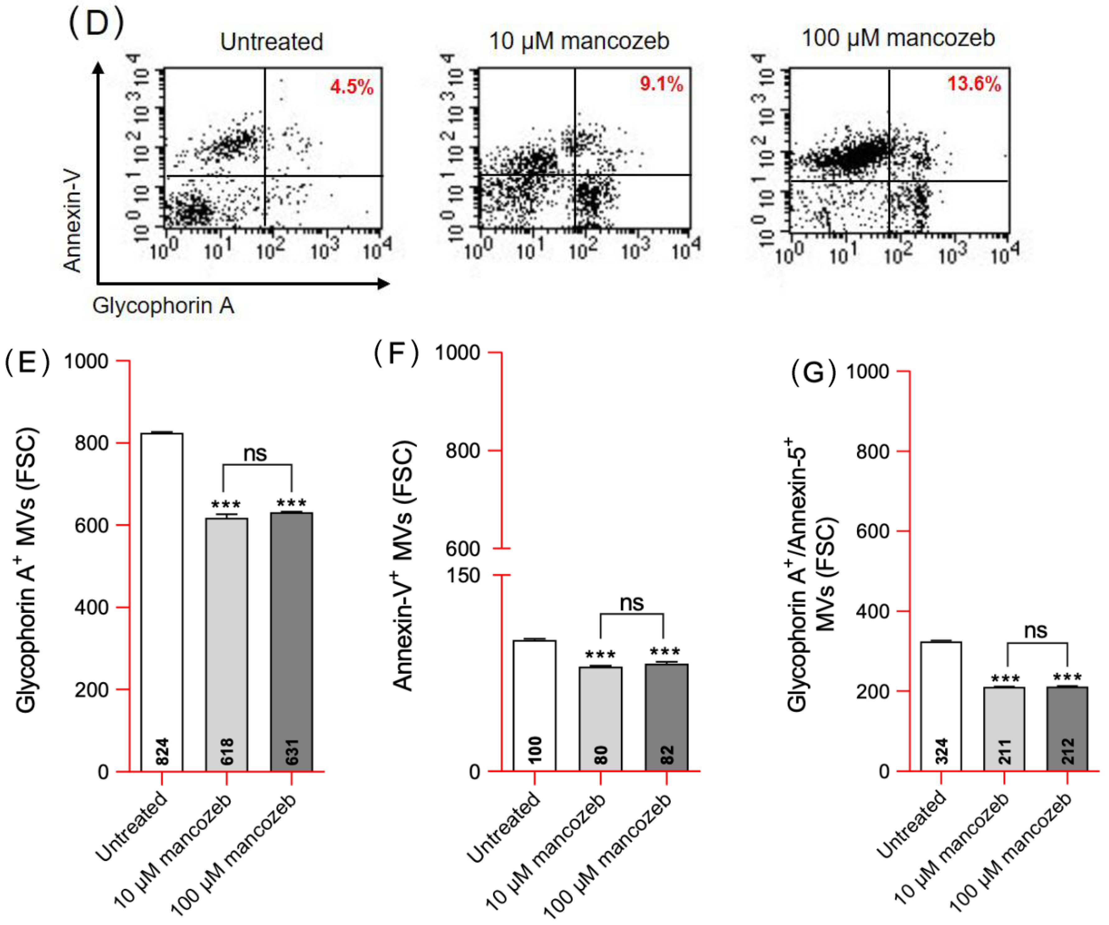 3.2.1. Detection of Glycophorin A Expression Levels and Distribution in Mancozeb-Treated RBCs