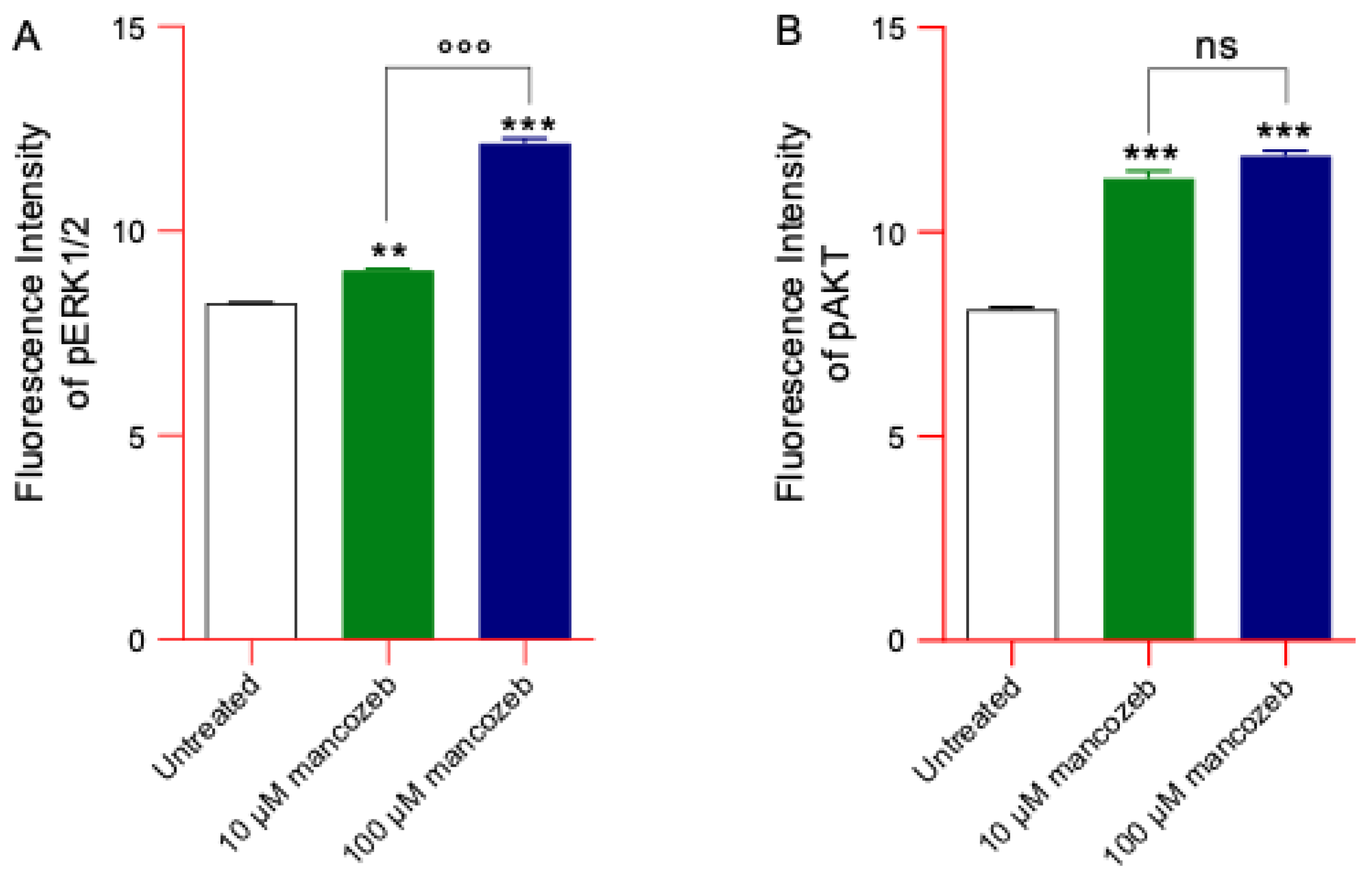 3.9. Measurement of Phosphorylated ERK and AKT Content in Mancozeb Treated-RBCs