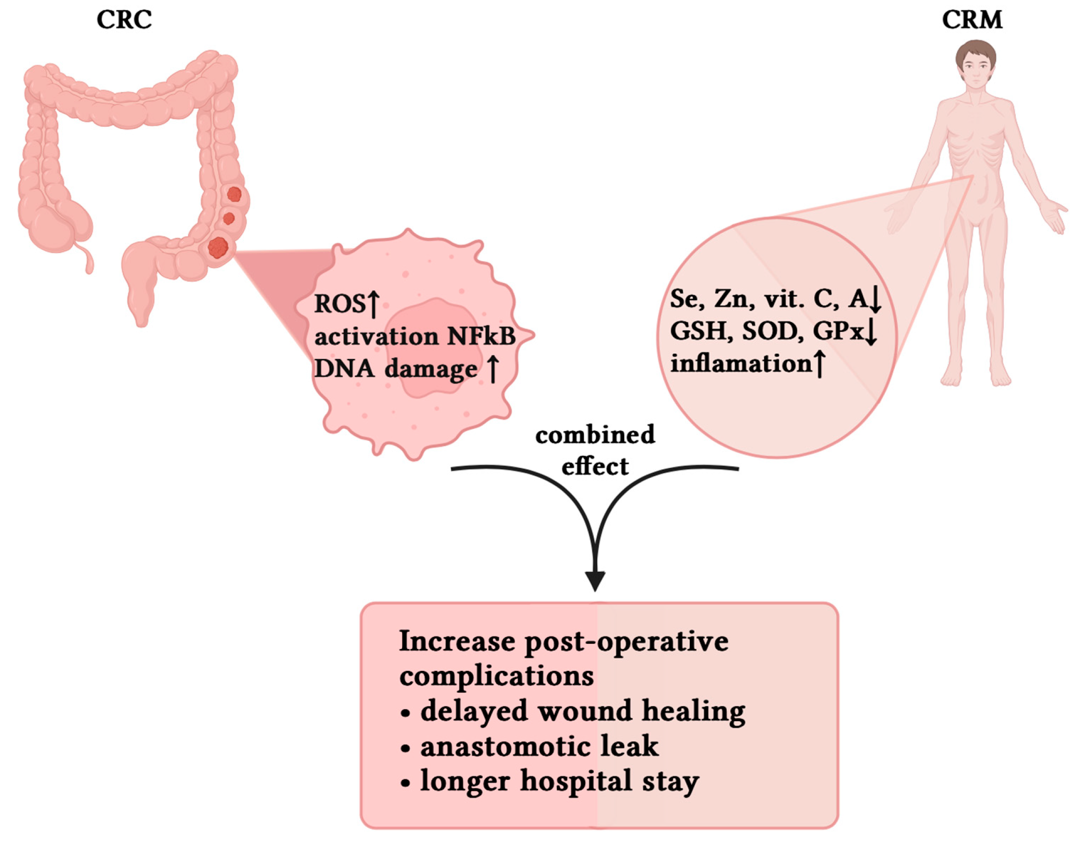 Zahorodnii A, Jelska A, Głuszyńska P, Razak Hady H. Cancer-Related Malnutrition and Oxidative Stress in Colorectal Cancer Surgery: A Narrative Review of Pathophysiology and Postoperative Outcomes. Antioxidants. 2025; 14(11):1289. https://doi.org/10.3390/antiox14111289