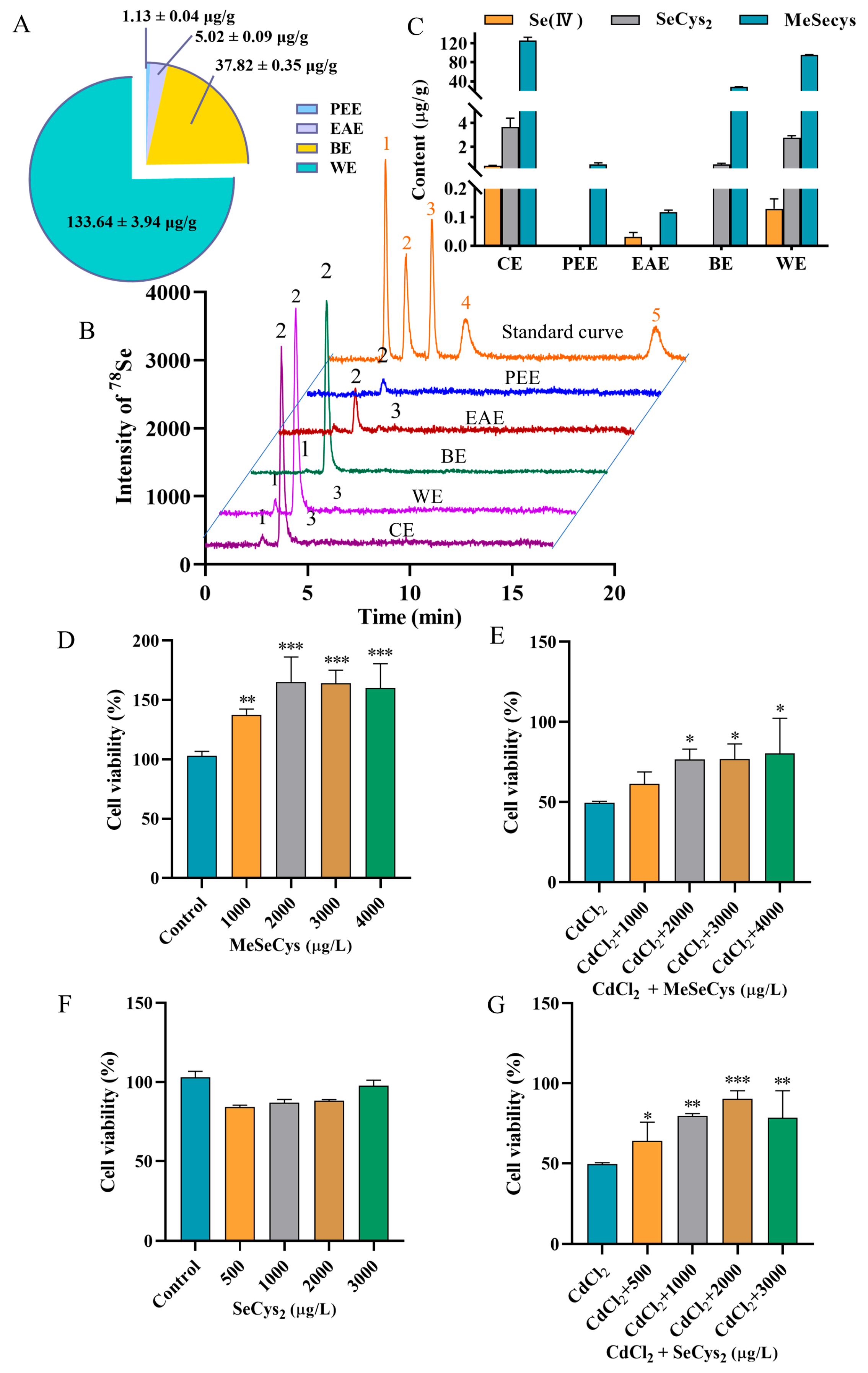3.3. Selenium-Containing Bioactive Components in the Extract
