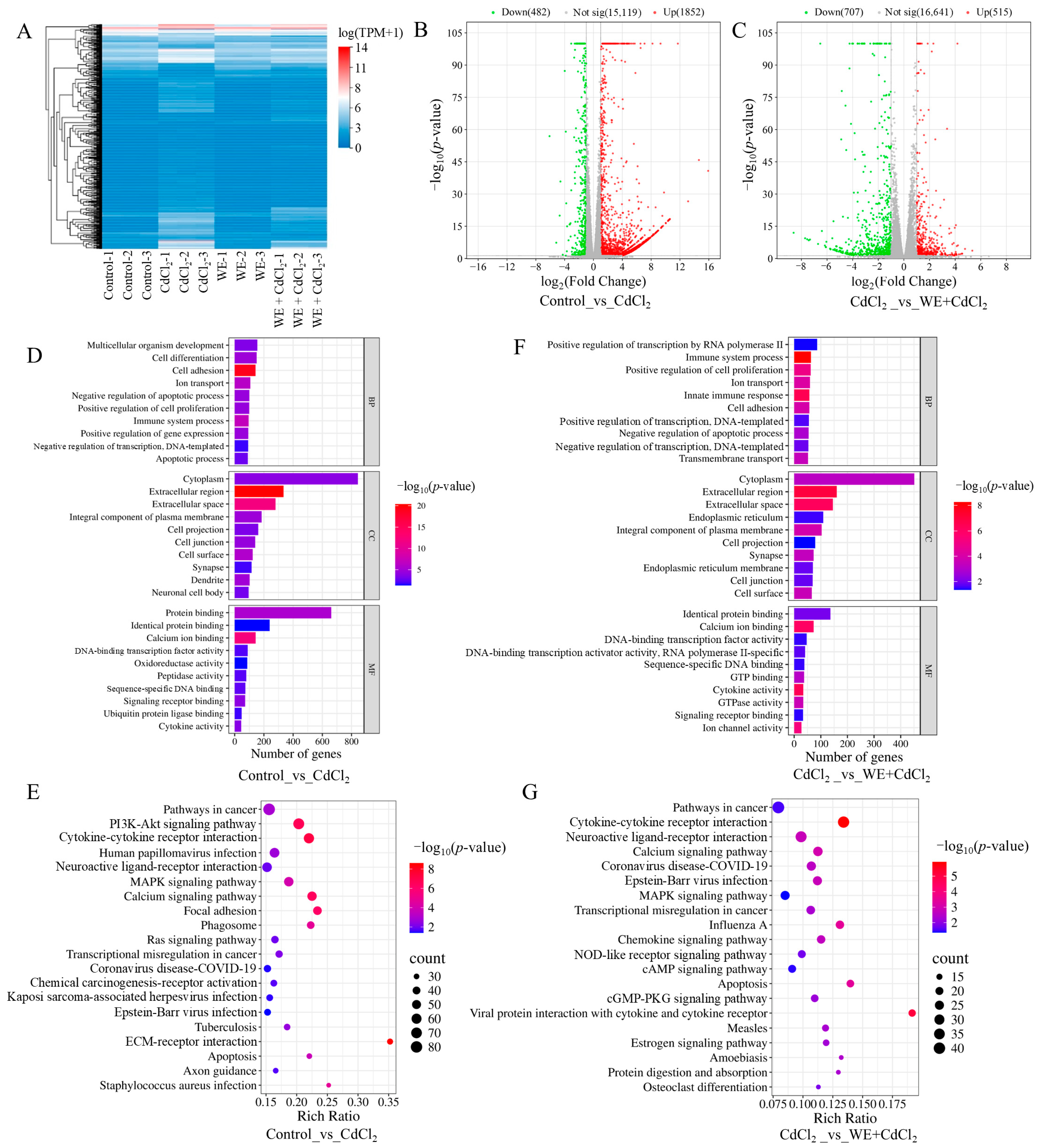 3.4. RNA-Seq Analysis of the Alleviation by WE of CdCl2-Induced Toxicity in TM4 Cells