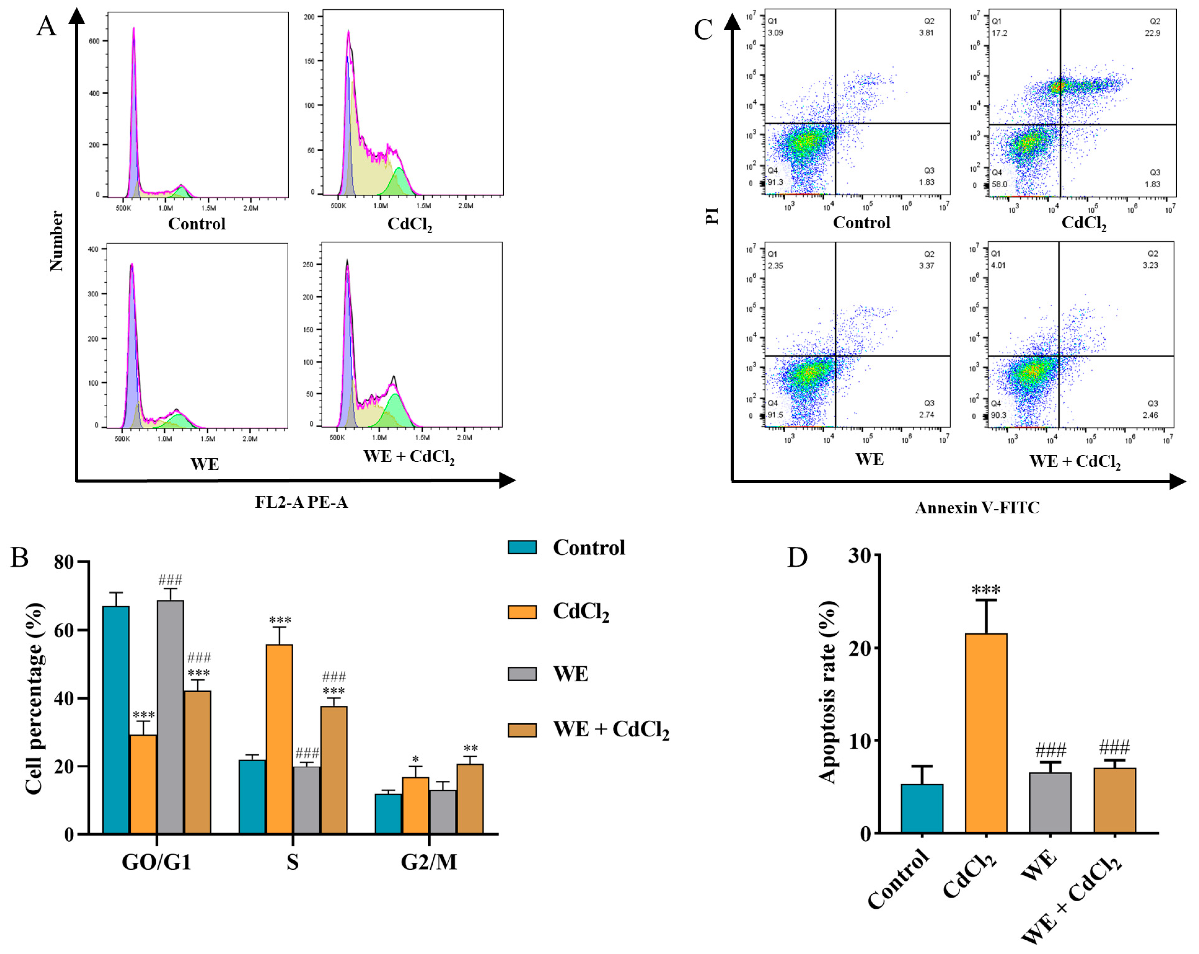 3.6. Effects of WE on Cell Cycle, Inflammation, and Apoptosis of TM4 Cells Under CdCl2 Exposure