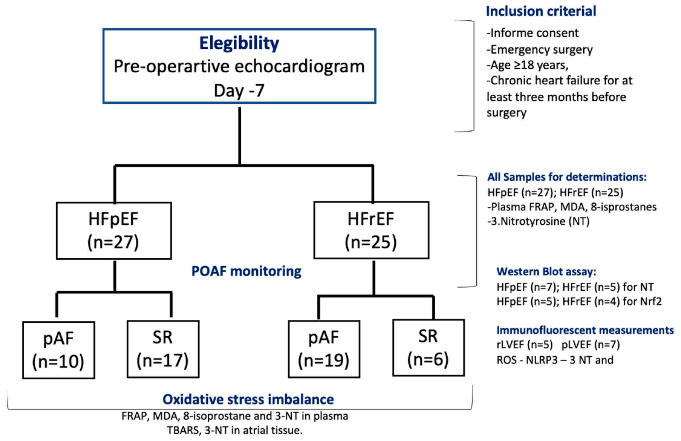 - Castillo, R.L.; Farías, J.G.; Sandoval, C.; González-Candia, A.; Figueroa, E.; Quezada, M.; Cruz, G.; Llanos, P.; Jorquera, G.; Kostin, S.; et al. Role of NLRP3 Inflammasome in Heart Failure Patients Undergoing Cardiac Surgery as a Potential Determinant of Postoperative Atrial Fibrillation and Remodeling: Is SGLT2 Cotransporter Inhibition an Alternative for Cardioprotection? Antioxidants 2024, 11, 1388. [Google Scholar] [CrossRef] [PubMed]