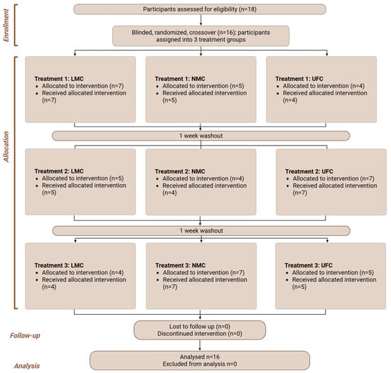 Figure 3. Flowchart of the study design showing the bioavailability phase (I) of the study. Created in BioRender. Ibi, A. https://BioRender.com/ohimwnn accessed on 28 August 2025.
