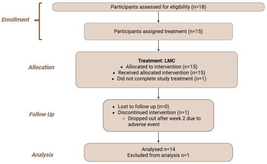 Figure 4. Flowchart of the study design showing the safety study phase (II) of the study. Created in BioRender. Ibi, A. https://BioRender.com/bsyxm6s accessed on 7 July 2025.