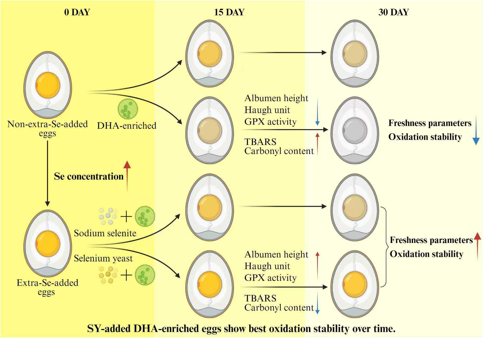 Zou C, Ge C, Lv Y, Huang W, Zhan S, Shen X, Yuan H, Wang X, Wu L, Yu D, et al. Comparative Effects of Selenium Yeast and Sodium Selenite on the Selenium Distribution, Interior Quality and Oxidative Stability of Docosahexaenoic Acid-Enriched Eggs During Storage. Antioxidants. 2025; 14(11):1333. https://doi.org/10.3390/antiox14111333