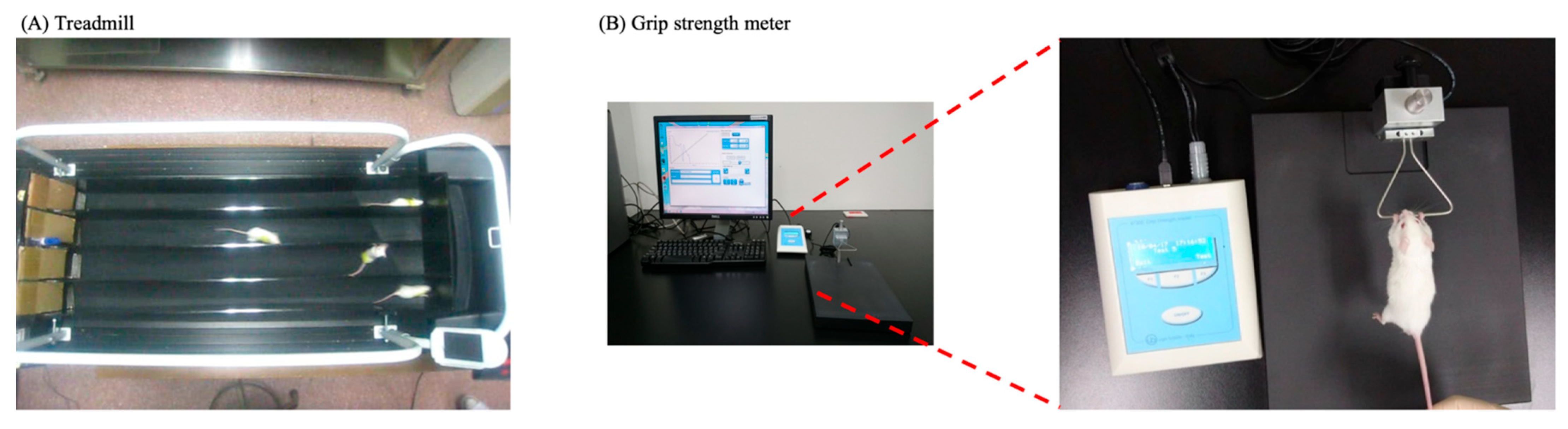 - Ueta, R.; Sugita, S.; Minegishi, Y.; Shimotoyodome, A.; Ota, N.; Ogiso, N.; Eguchi, T.; Yamanashi, Y. DOK7 gene therapy enhances neuromuscular junction innervation and motor function in aged mice. iScience 2020, 23, 101385. [Google Scholar] [CrossRef]