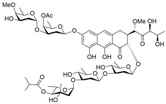 - Tevyashova, A.N.; Durandin, N.A.; Vinogradov, A.M.; Zbarsky, V.B.; Reznikova, M.I.; Dezhenkova, L.G.; Bykov, E.E.; Olsufyeva, E.N.; Kuzmin, V.A.; Shtil, A.A.; et al. Role of the acyl groups in carbohydrate chains in cytotoxic properties of olivomycin A. J. Antibiot. 2013, 66, 523–530. [Google Scholar] [CrossRef]