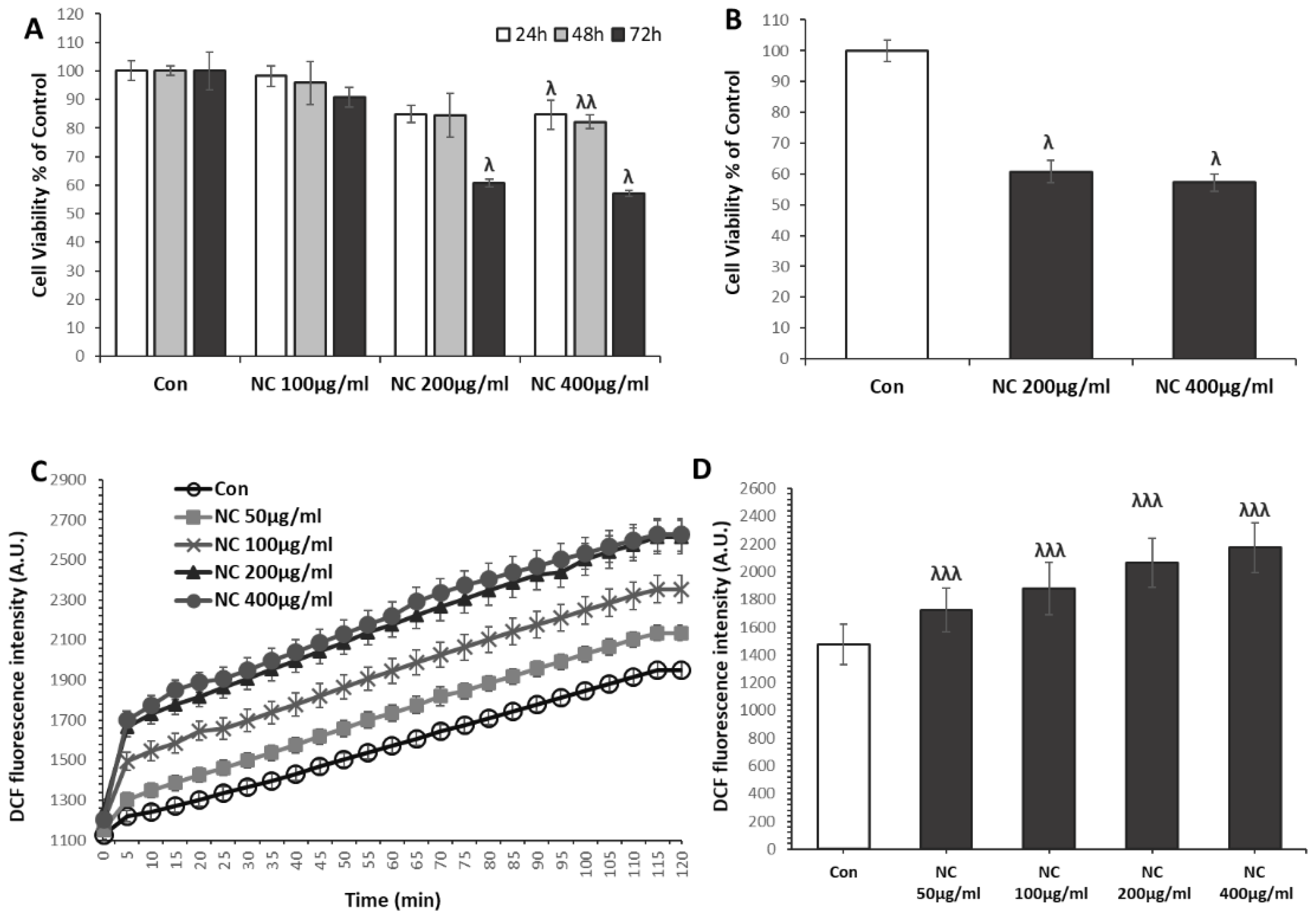 3.1. Cytotoxic and Pro-Oxidant Effects of Nanoceria on MCF7 Breast Cancer Cells