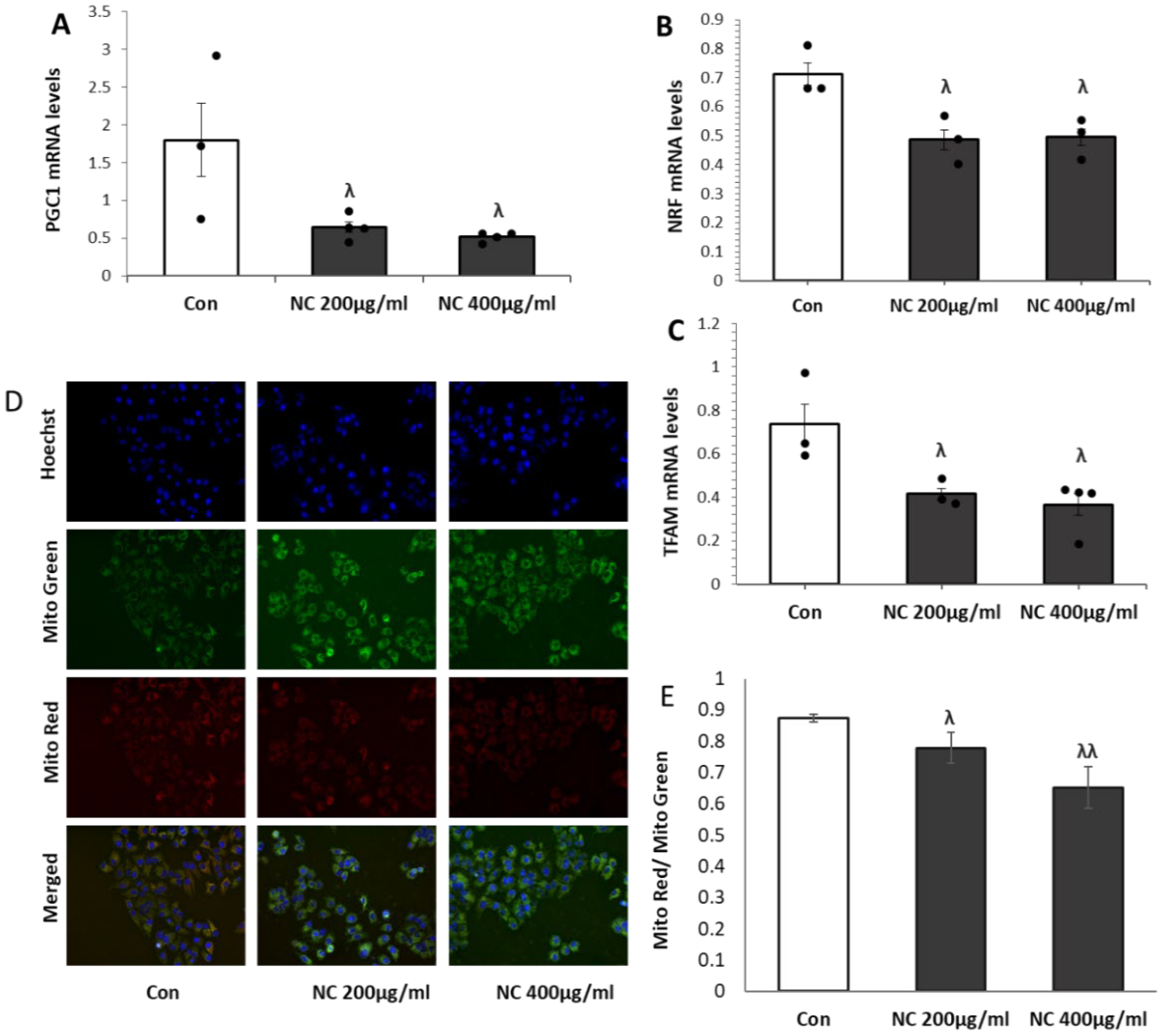 3.4. Nanoceria Inhibits Mitochondrial Biogenesis and Induces Mitochondrial Dysfunction in a Dose-Dependent Manner in MCF7 Cells