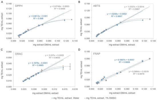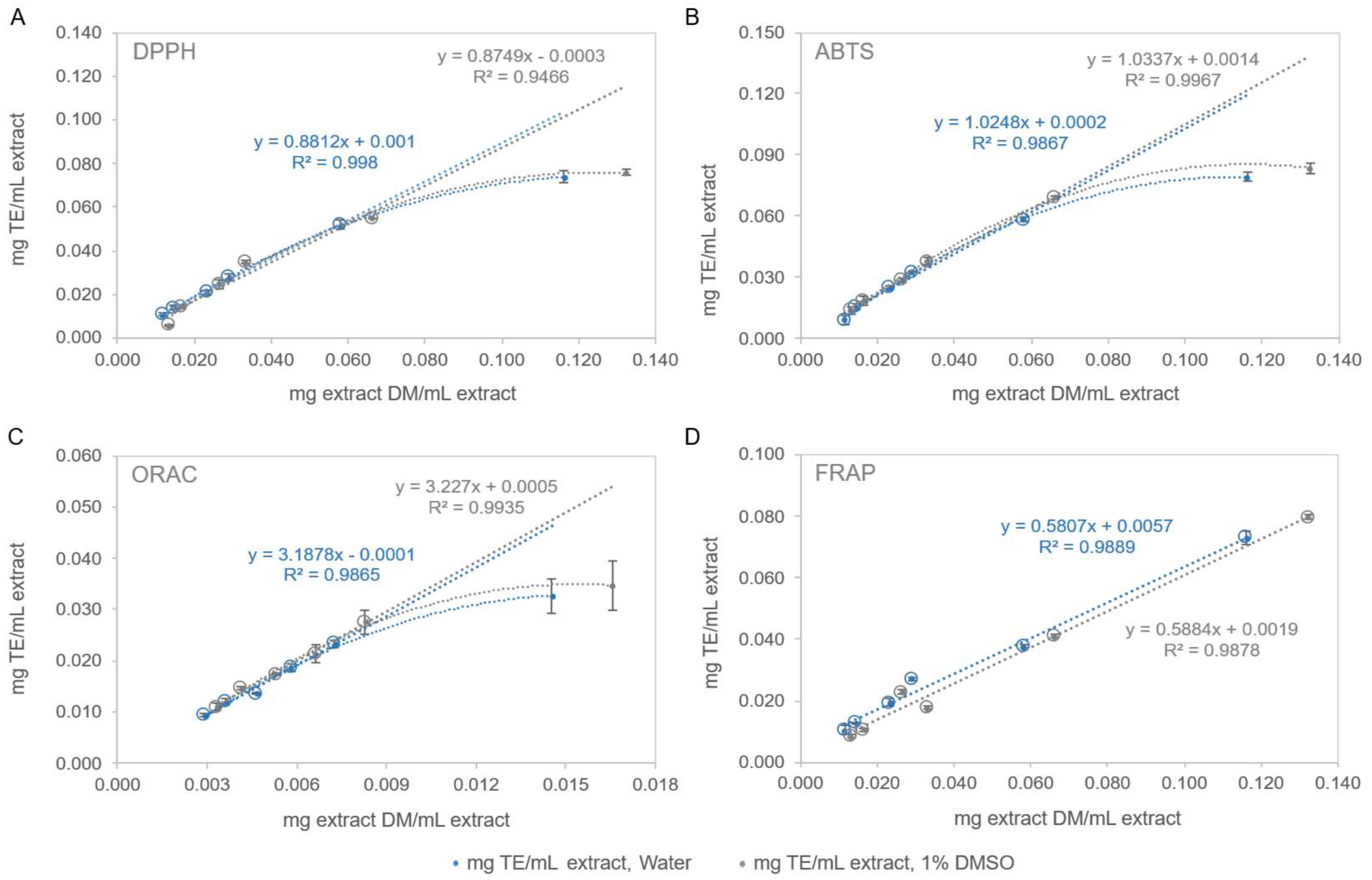 | mg TE/mL PBE | 1.688 ± 0.047 | 1.948 ± 0.036 | p < 0.05 | p = 1.62 × 10−3 | |