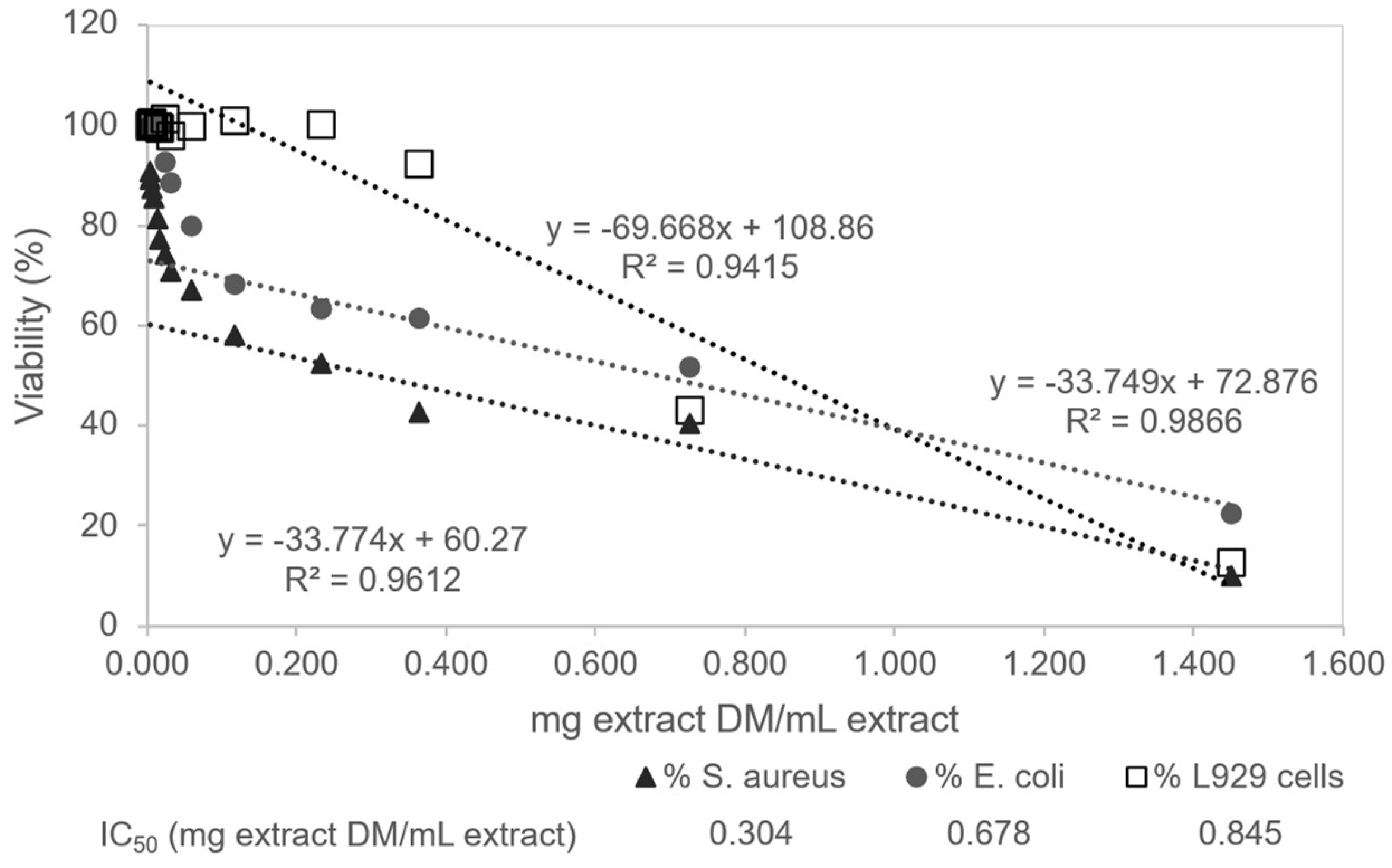 3.3. Antibacterial Activity and Cytotoxicity of the Aqueous Extract