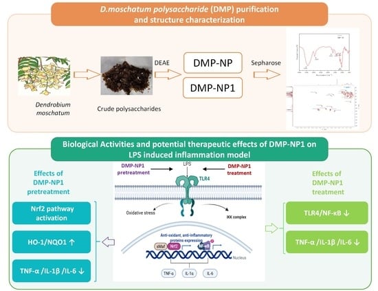 This study aims to characterize the chemical structure of DMP-NP1, elucidate its anti-inflammatory and antioxidant mechanisms, with a focus on the TLR4-NF-κB and Nrf2 signaling pathways, in intestinal epithelial cells, and establish a structure–activity relationship model to guide the development of polysaccharide-based IBD therapeutics. This work represents the first comprehensive analysis of the structure and mechanisms of DMP-NP1, bridging the gap between traditional medicinal uses and modern pharmacological validation. Our findings not only advance the clinical translation of Dendrobium polysaccharides for IBD treatment but also offer a valuable framework for accelerating the development of underutilized medicinal plant resources.