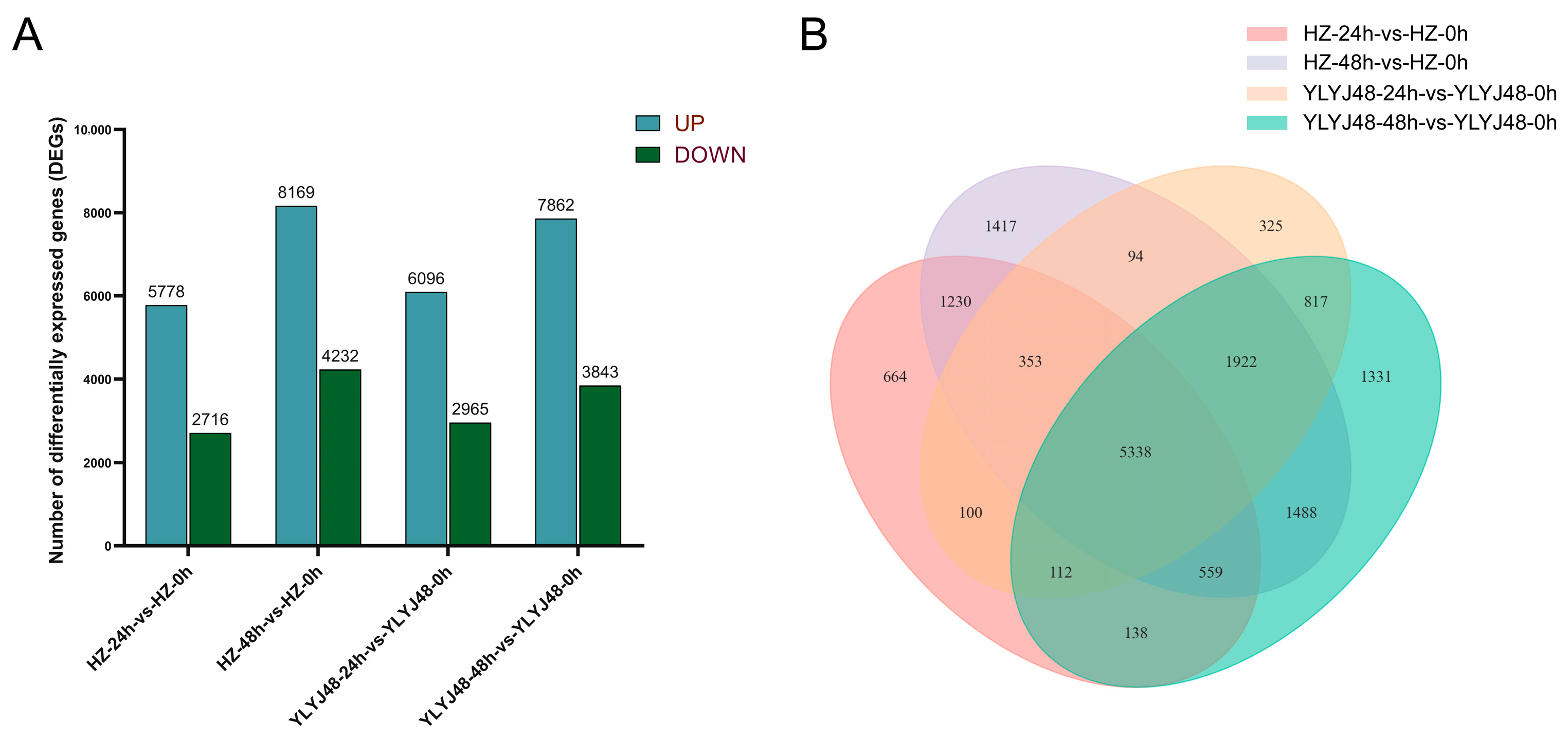 3.2.2. GO and KEGG Pathway Enrichment Analysis of DEGs from Different Sprouting Treatments