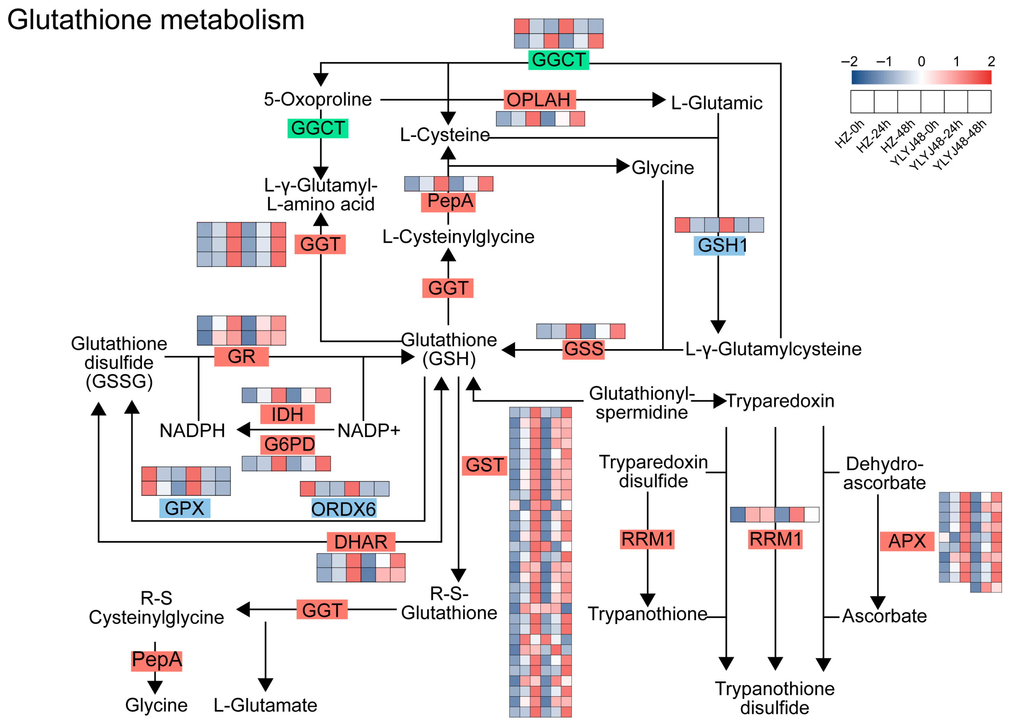 3.2.3. Sprouting Regulates Key Genes in the Glutathione Metabolism Pathway of Rice