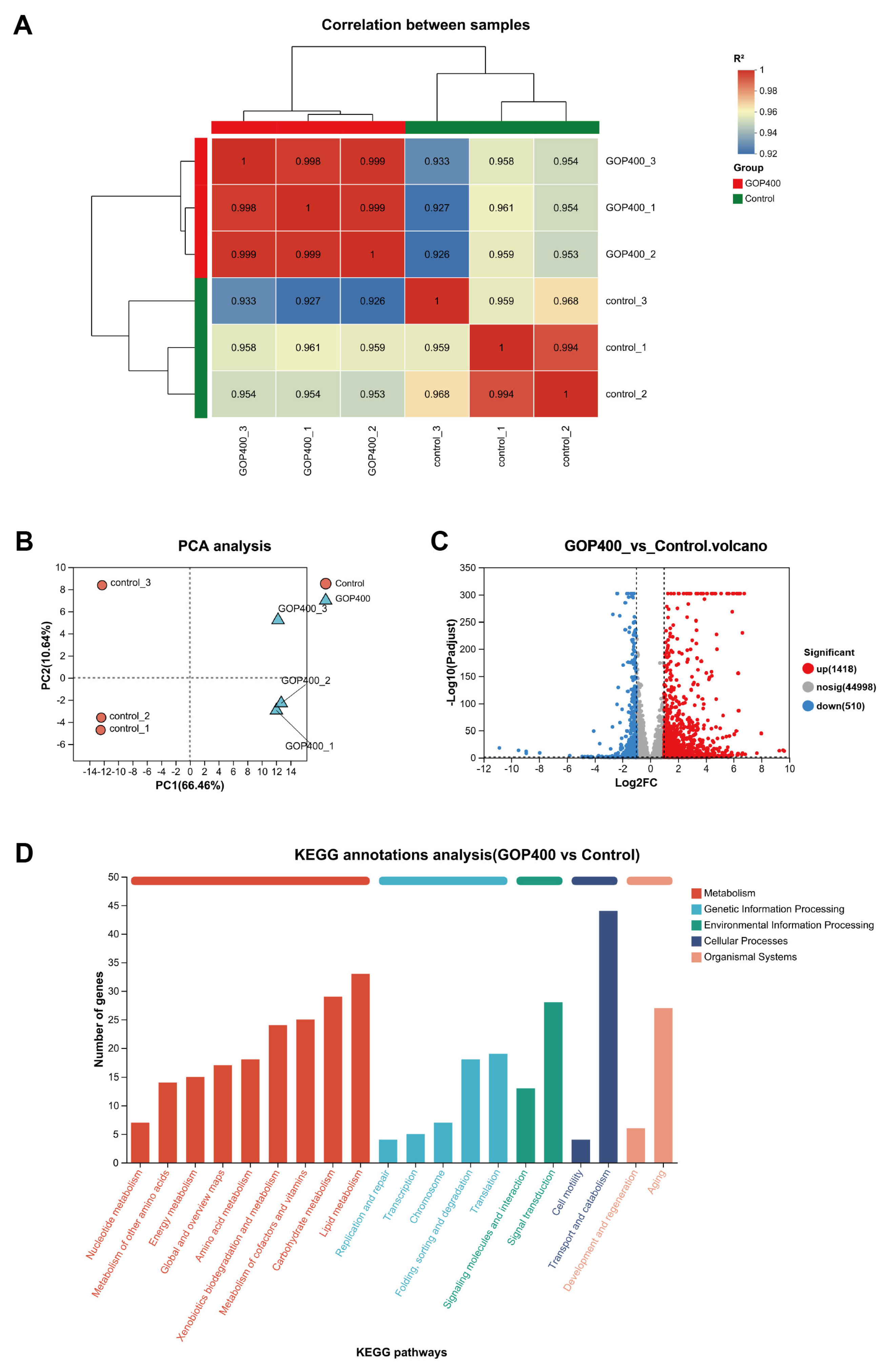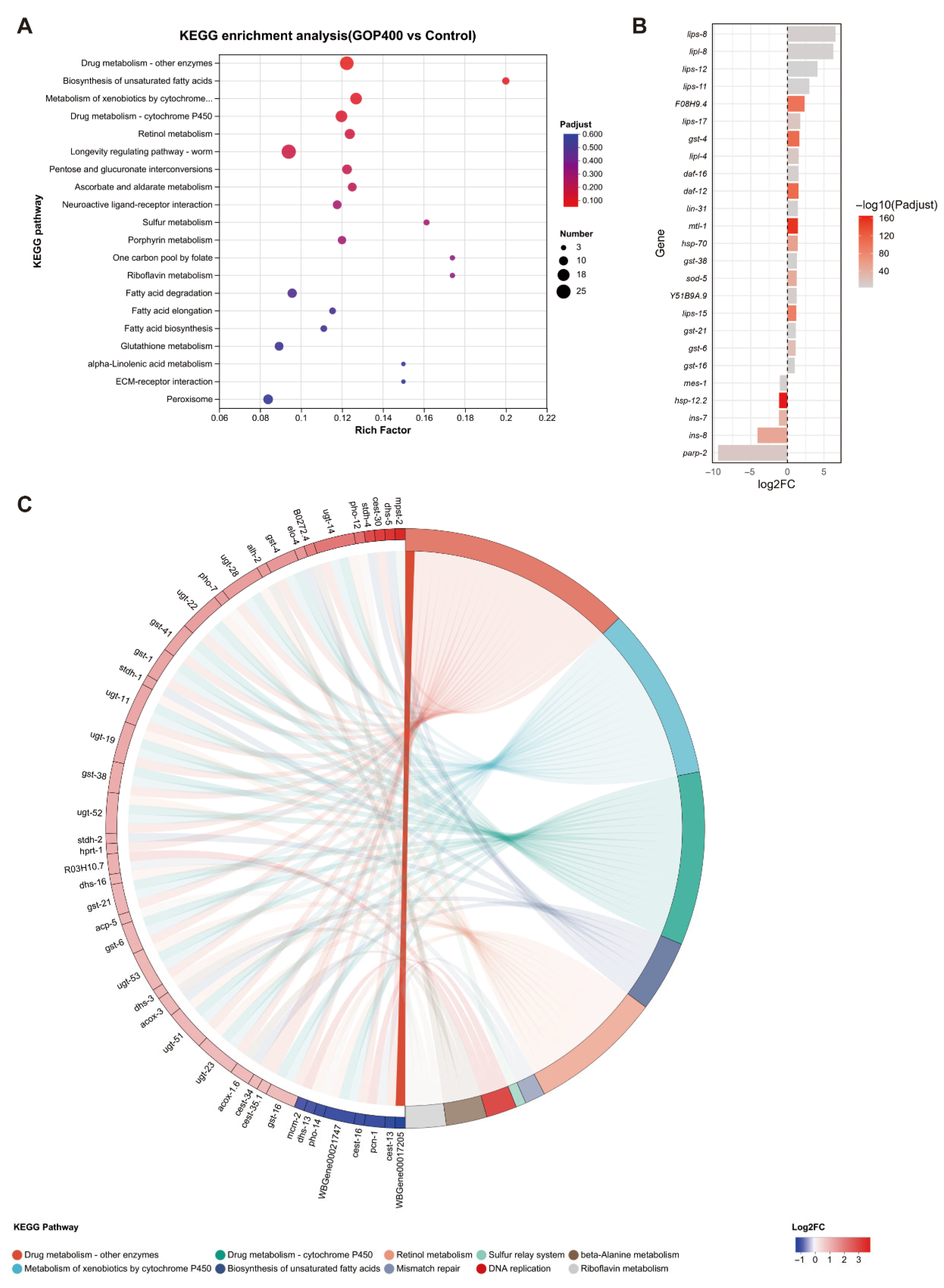 3.2. GOP Induces Global Transcriptomic Alterations and Activates Longevity-Related Pathways