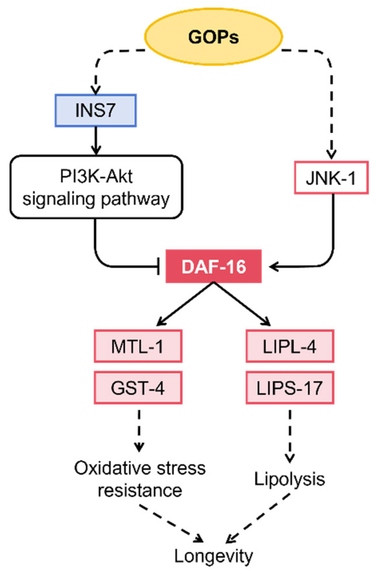 4.4. DAF-16/FOXO Signaling Mediates the Longevity Effects of GOPs