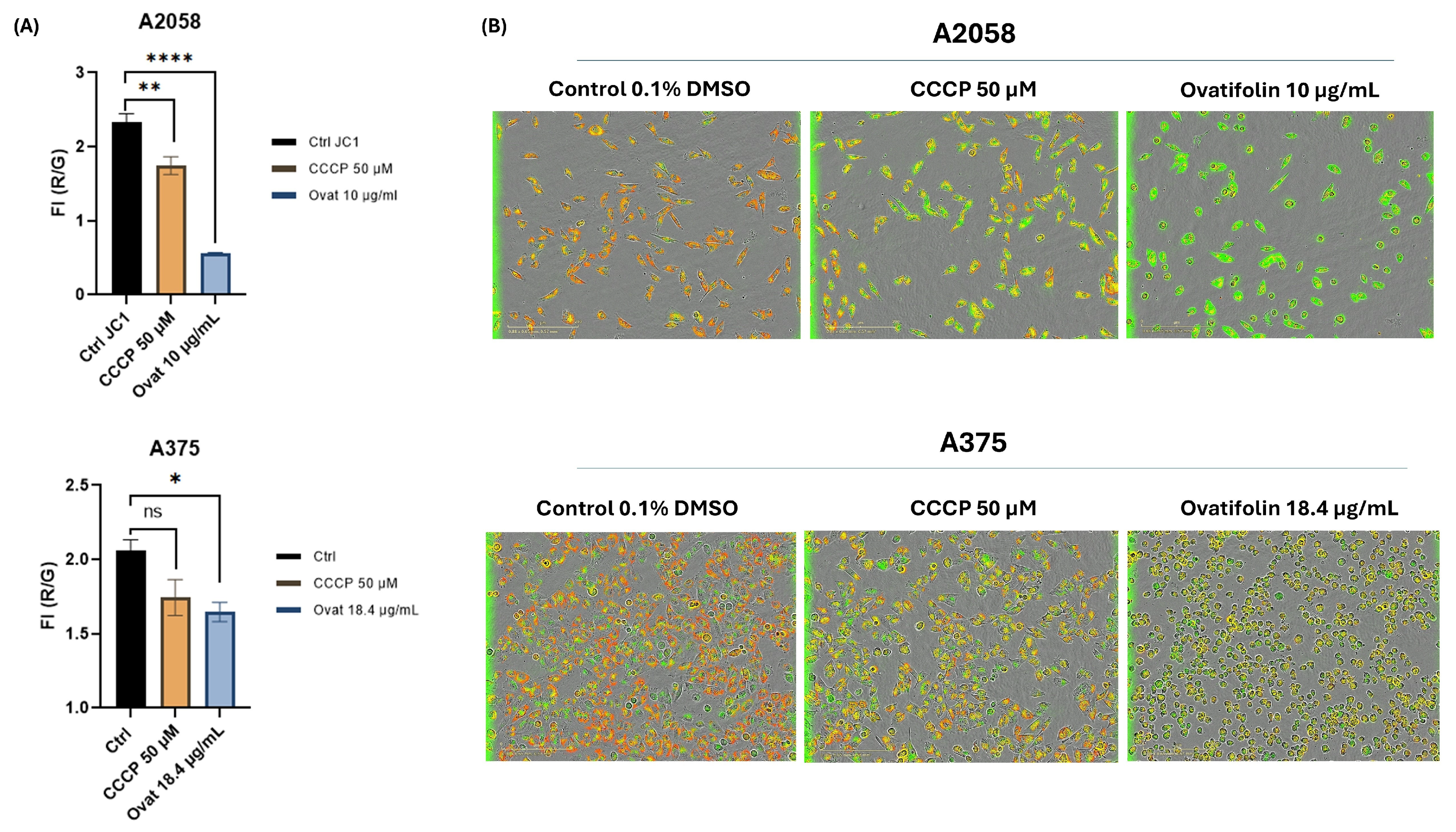 3.5. Ovatifolin Increases Cellular ROS Production and Decreases Mitochondrial Membrane Potential in Melanoma Cancer Cells