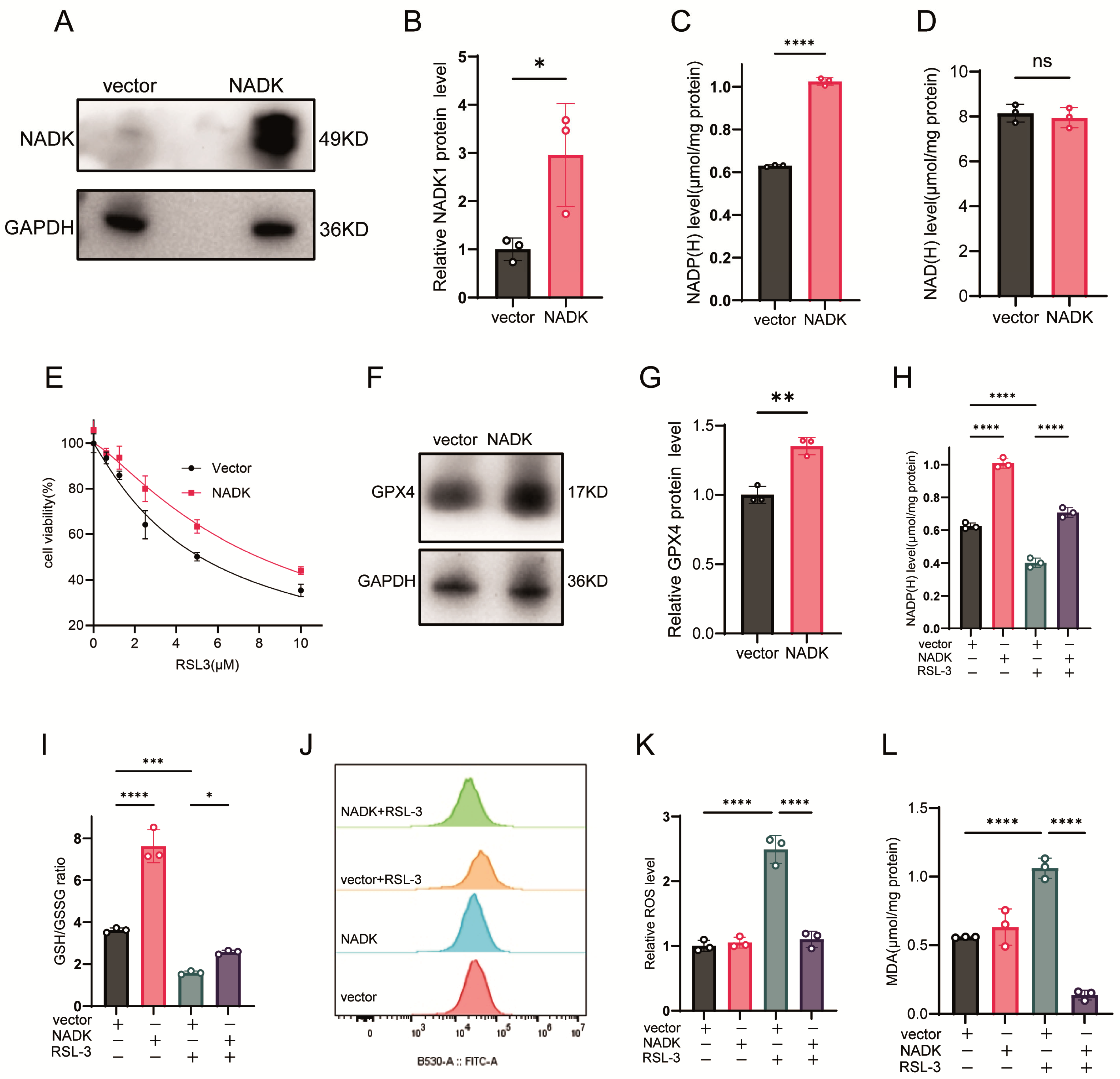 3.3. Overexpression of NADK Restores NADP(H) and Confers Ferroptosis Resistance