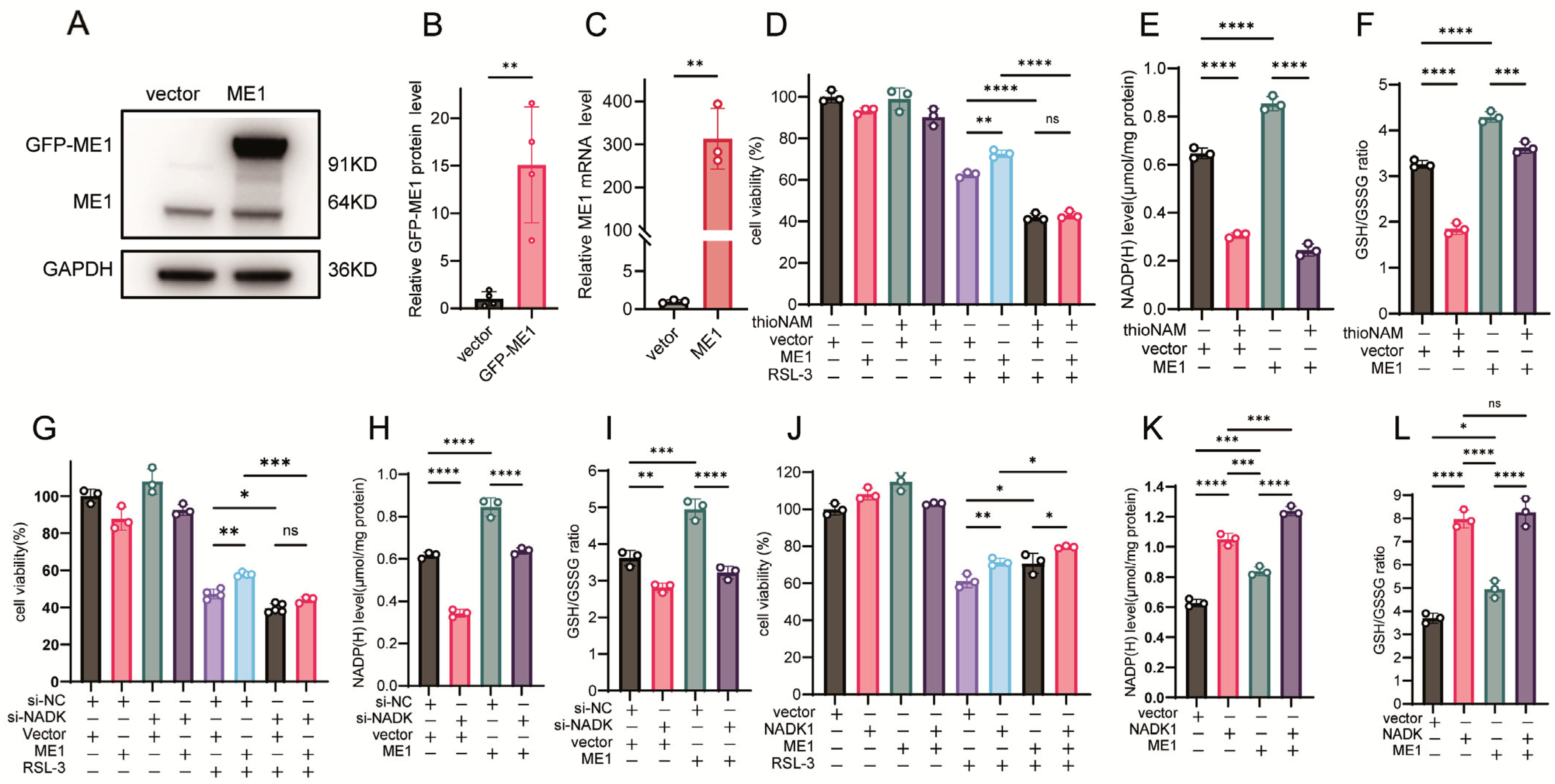 3.5. NADK Is Required for ME1-Mediated Ferroptosis Resistance