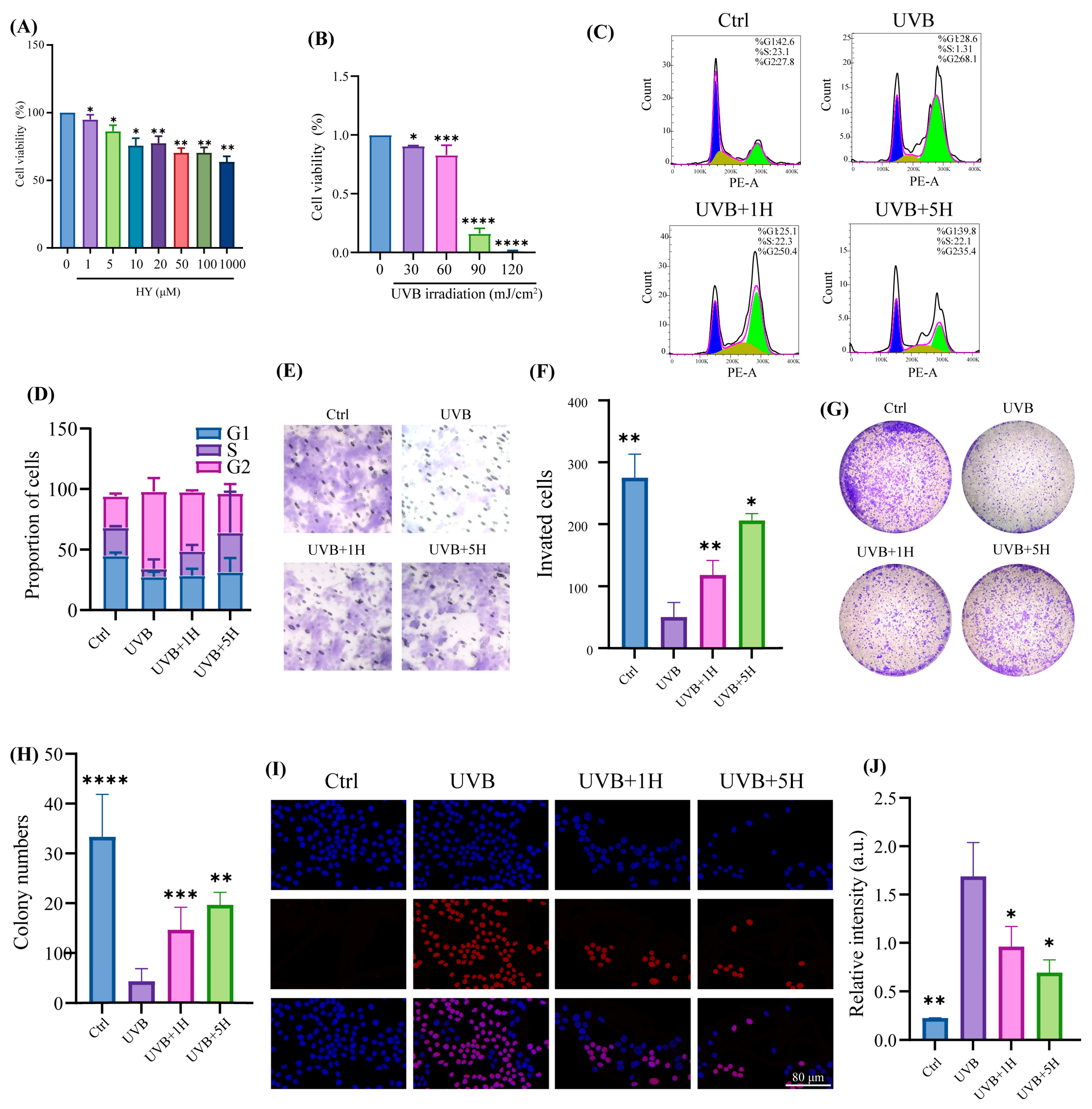 3.1. Protective Effect of HY Against UVB-Induced Skin Damage In Vitro