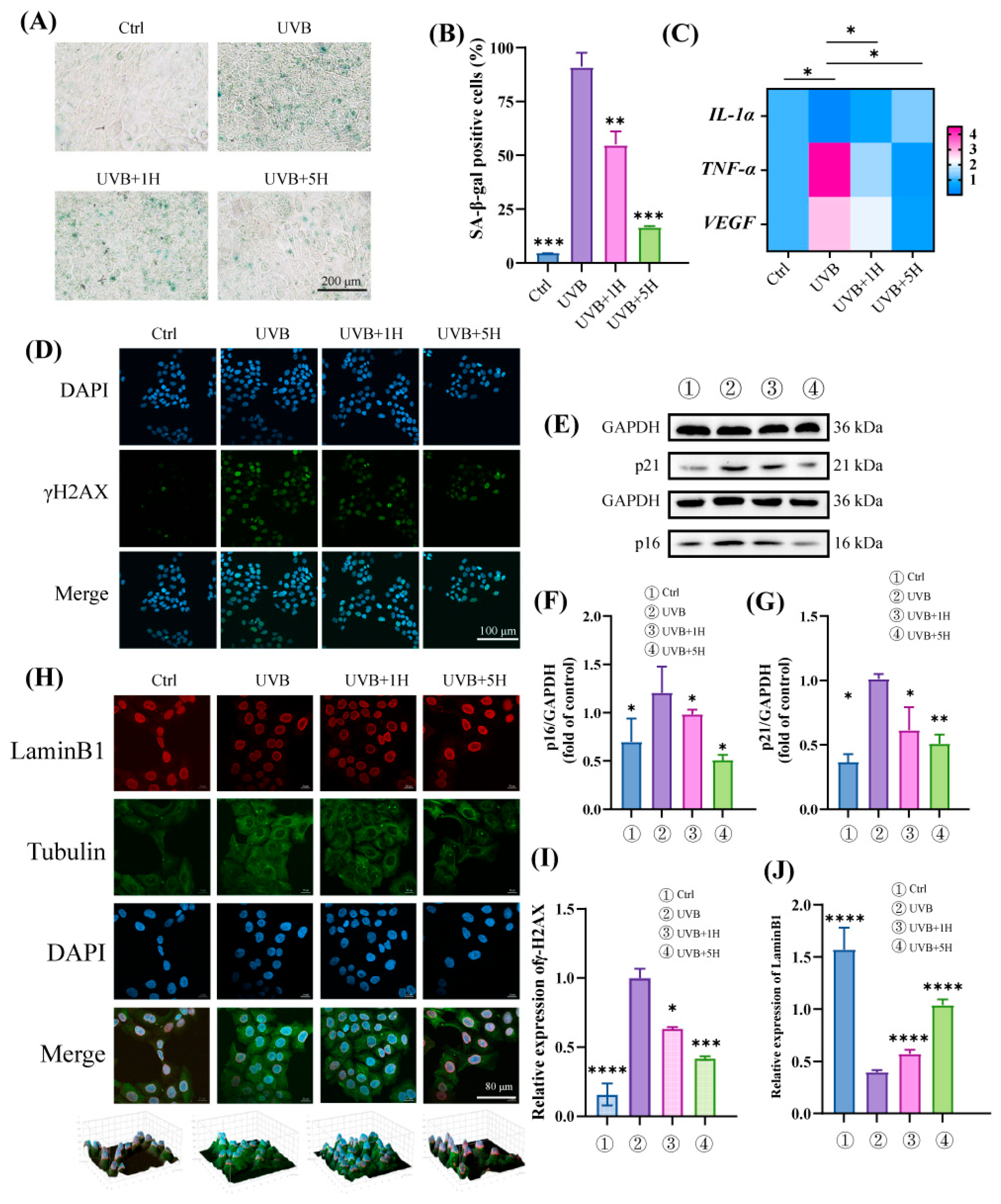 3.8. HY Exhibits Potential in Inhibiting Skin Photoaging and Cellular Damage in Mice