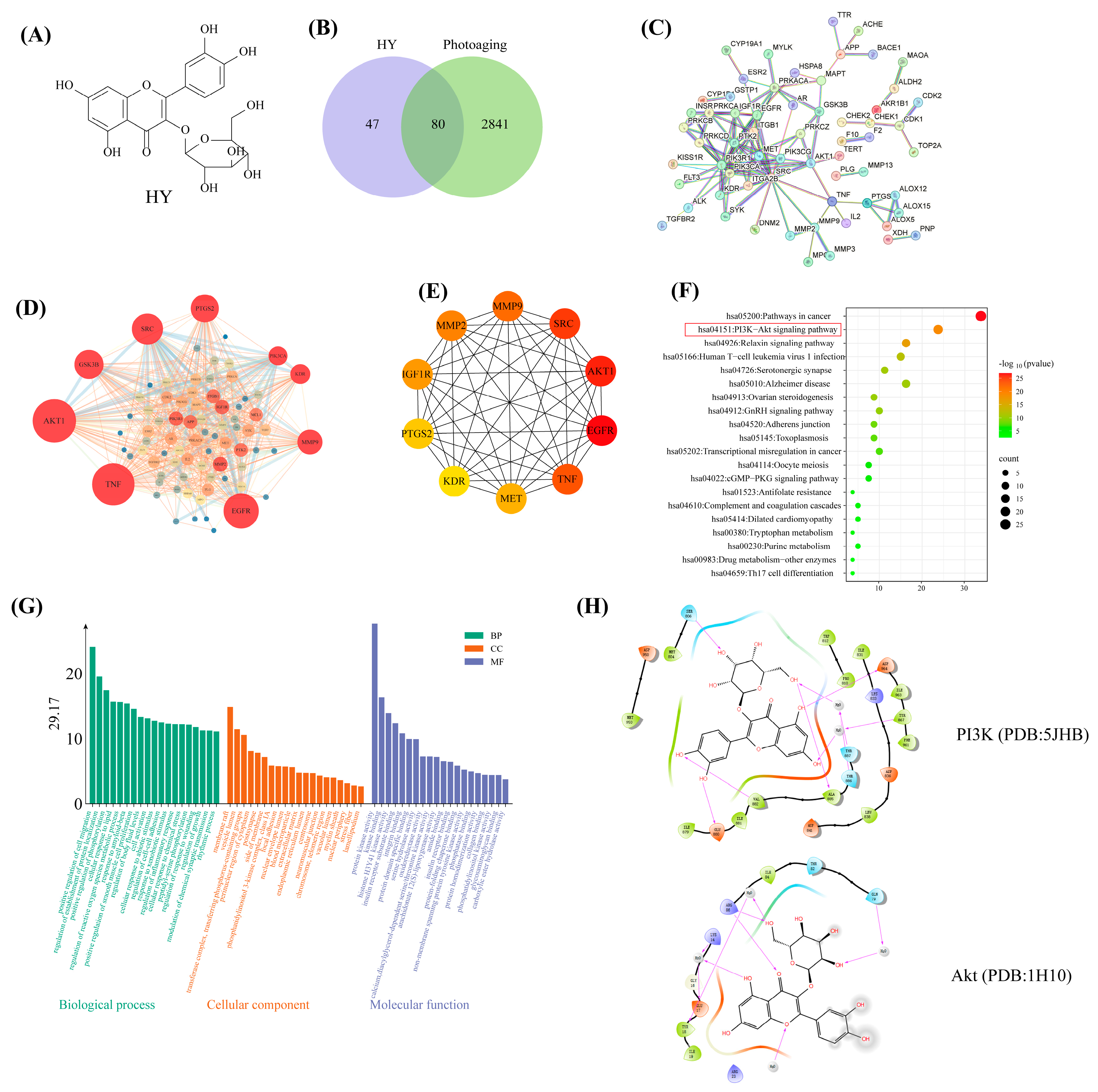 3.5. Network Pharmacology Predicts the Molecular Mechanisms of HY in the Prevention of Photoaging