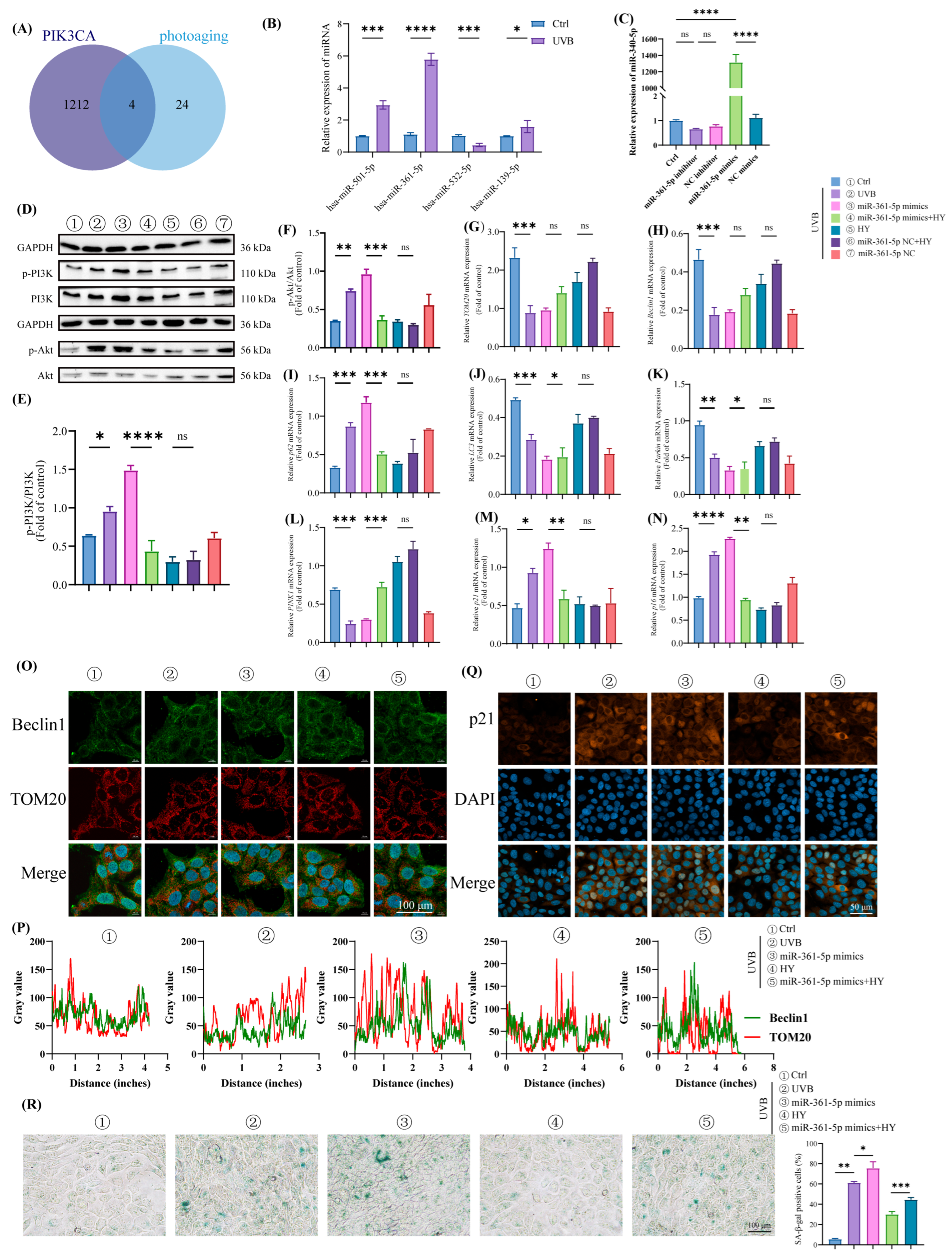 Yang, D.; Le, J.; Xiao, S.; Cui, Y.; Zhu, W.; Otsuki, K.; Li, W.; Xu, J.; Feng, F.; Zhang, J. Hyperoside Promotes Mitochondrial Autophagy Through the miR-361-5p/PI3K/Akt/mTOR Signaling Pathway, Thereby Improving UVB-Induced Photoaging. Antioxidants 2025, 14, 1401. https://doi.org/10.3390/antiox14121401