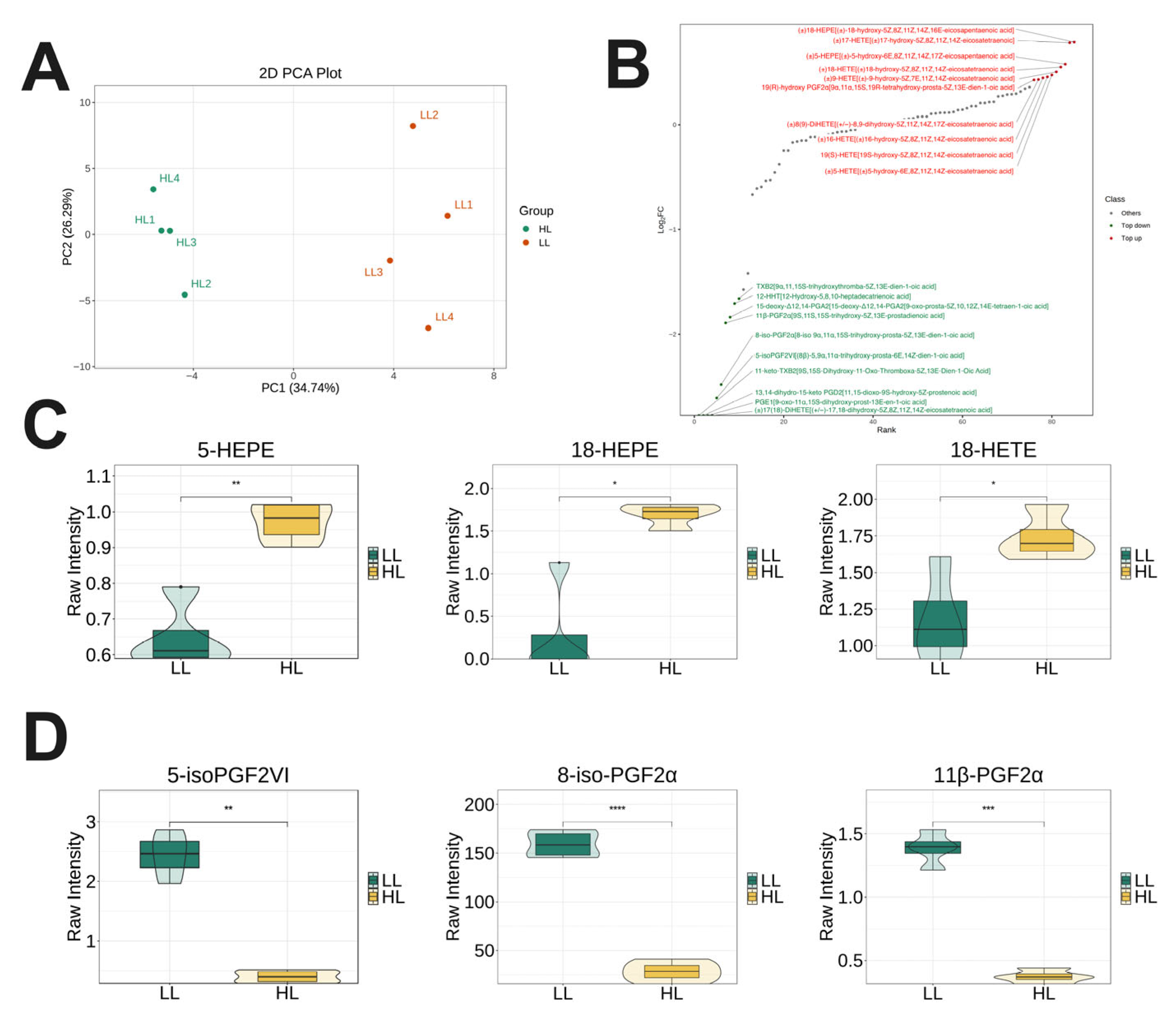 3.5. Targeted Lipidomics Analysis in Plasma of Laying Ducks