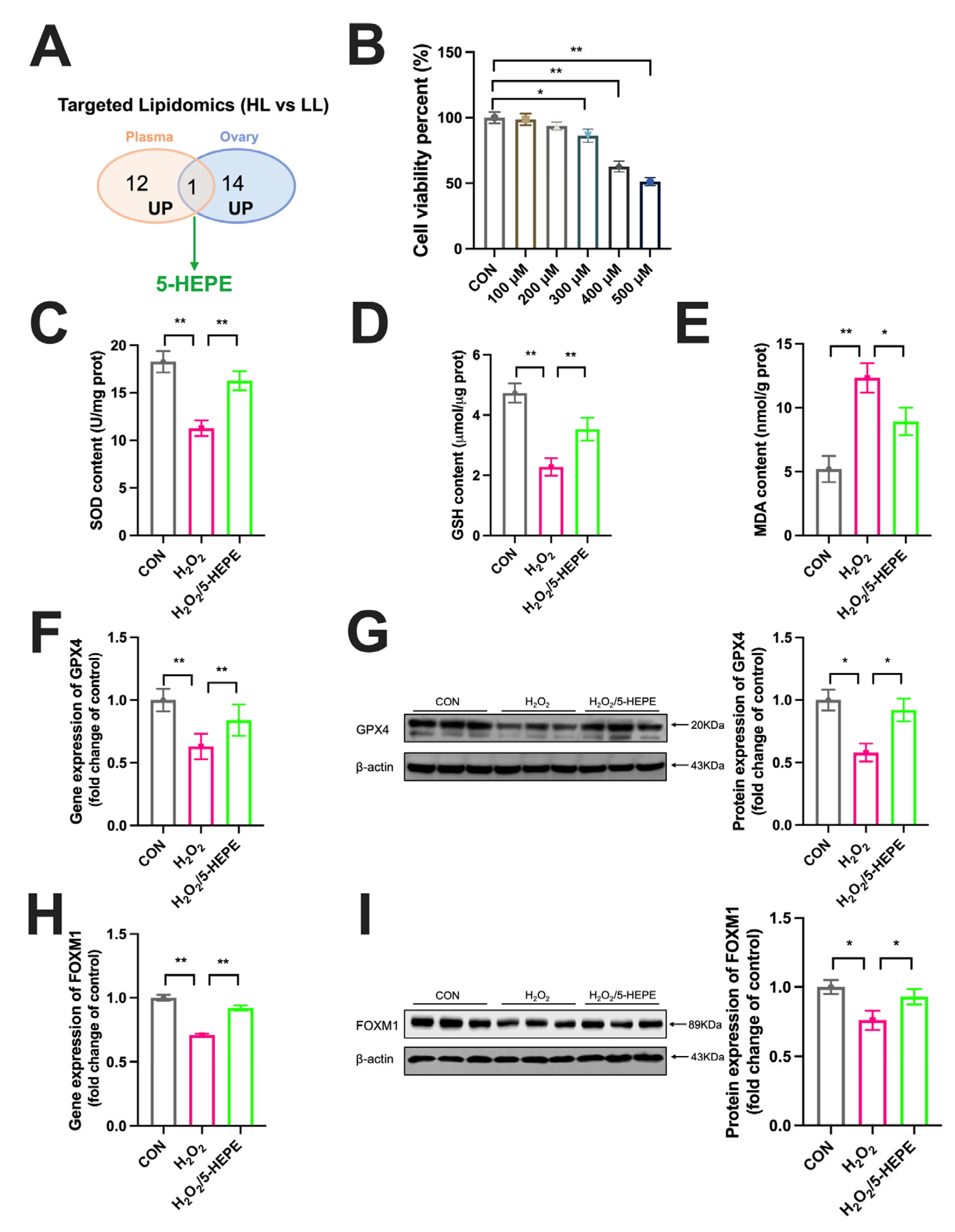 Zong, Y.; Liu, J.; Xu, W.; Gu, T.; Tian, Y.; Chen, L.; Zeng, T.; Lu, L. 5-HEPE Ameliorates Aging of Duck Ovarian Granulosa Cells by Targeting FOXM1 and Suppressing Oxidative Stress. Antioxidants 2025, 14, 1425. https://doi.org/10.3390/antiox14121425