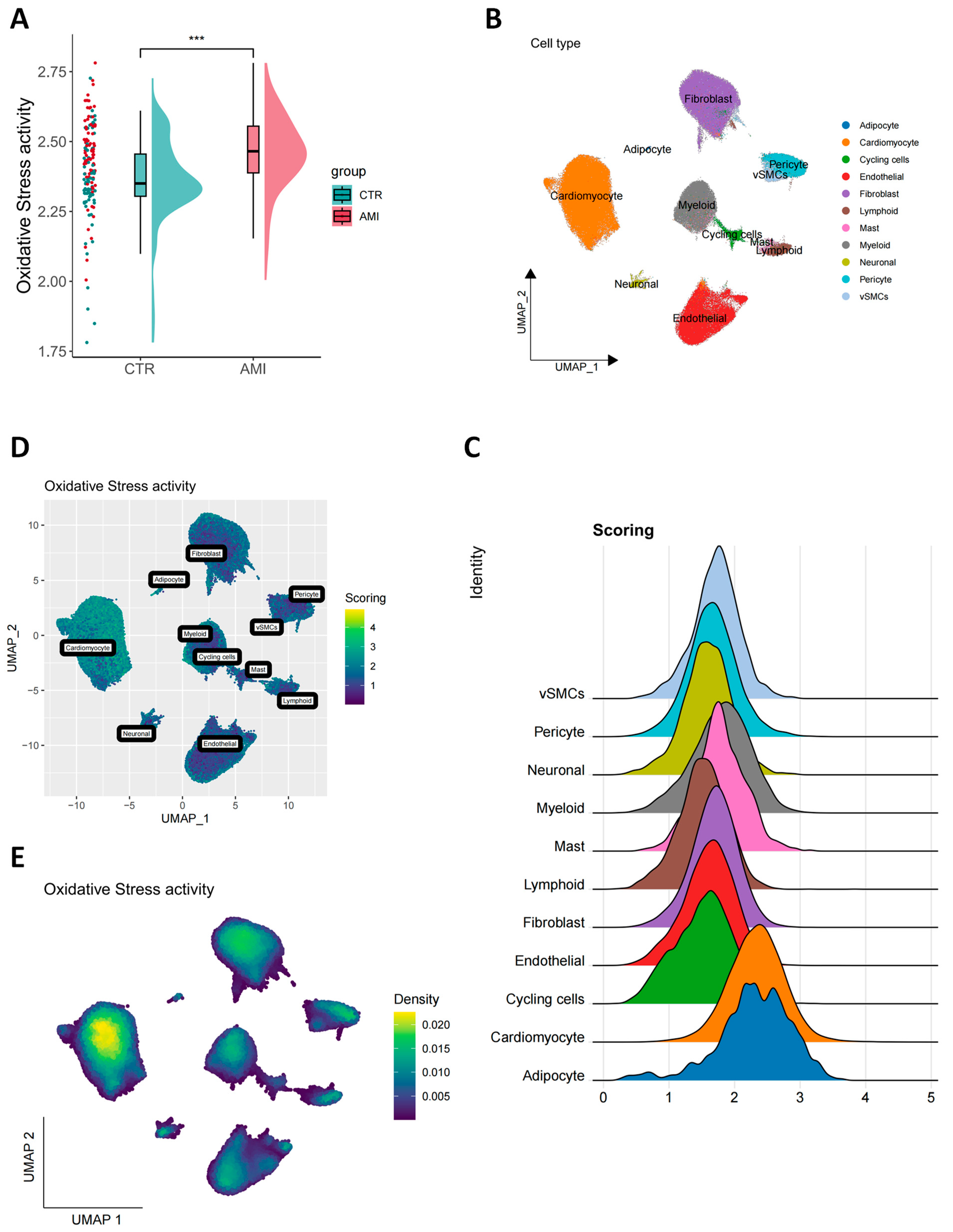 Chicago/Turabian StyleHu, Jiashuo, Ao Wang, and Lan Hong. 2025. "Single-Cell Transcriptomics of Human Acute Myocardial Infarction Reveals Oxidative Stress-Associated Cardiomyocyte Subpopulations and Candidate Predictive Signatures" Antioxidants 14, no. 12: 1435. https://doi.org/10.3390/antiox14121435