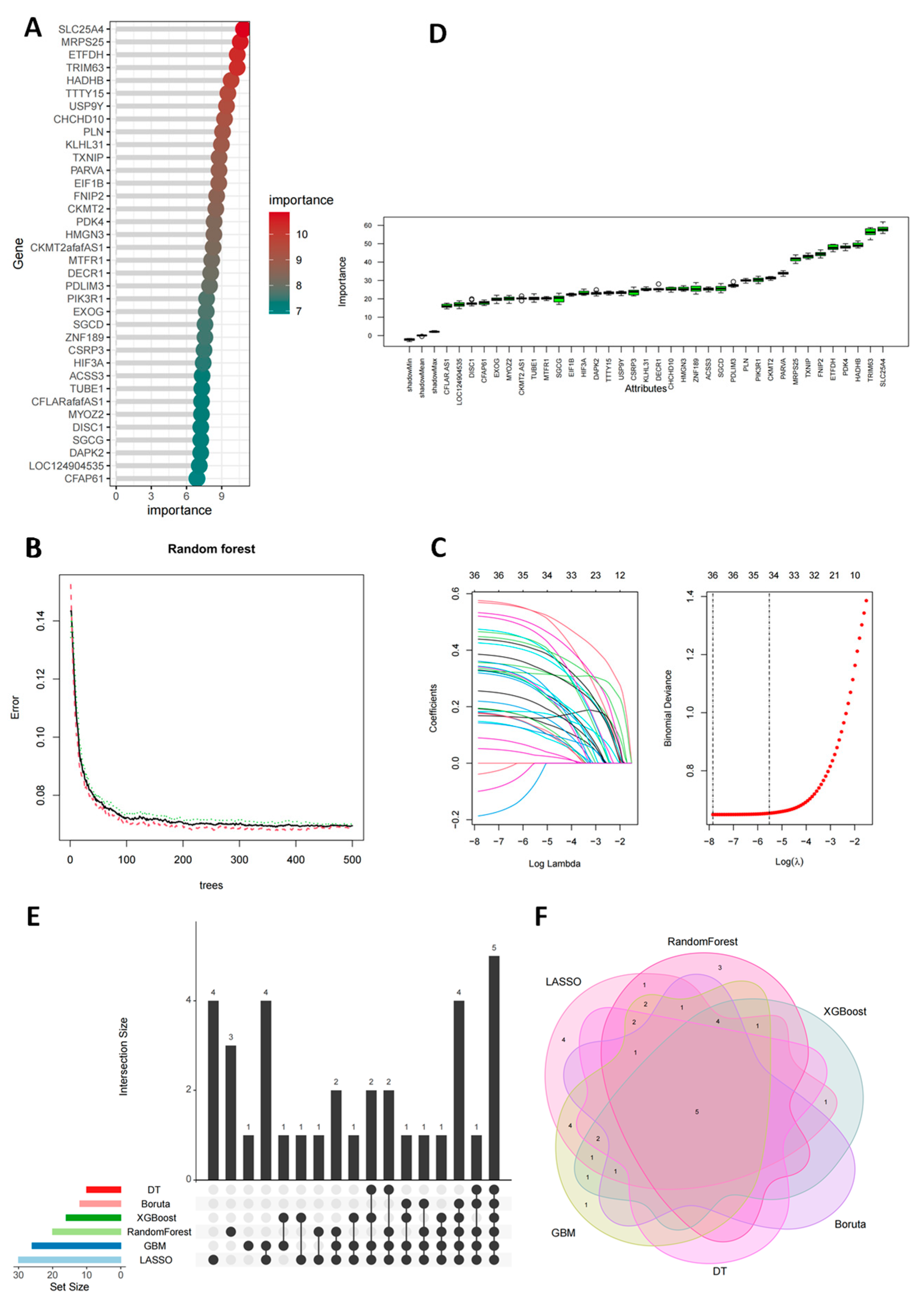 3.5. Screening Key Feature Genes for Acute Myocardial Infarction Using Multi-Algorithm Ensemble Models