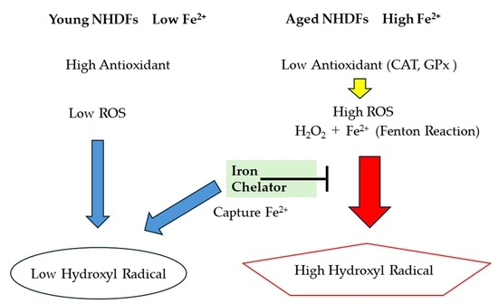 APA StyleTakemoto, K., Ozaki, A., Tanii, Y., Yagi, M., Ichihashi, M., & Ando, H. (2025). Iron Chelation Reduces Intracellular Hydroxyl Radicals in Normal Human Dermal Fibroblasts Independently of Aging. Antioxidants, 14(12), 1437. https://doi.org/10.3390/antiox14121437